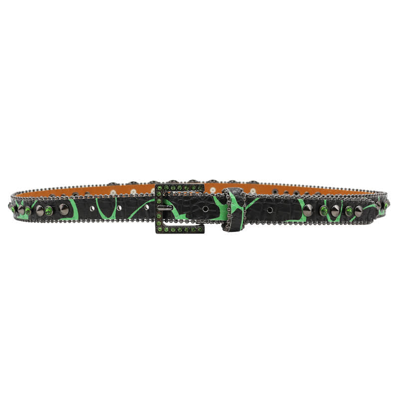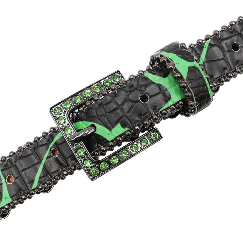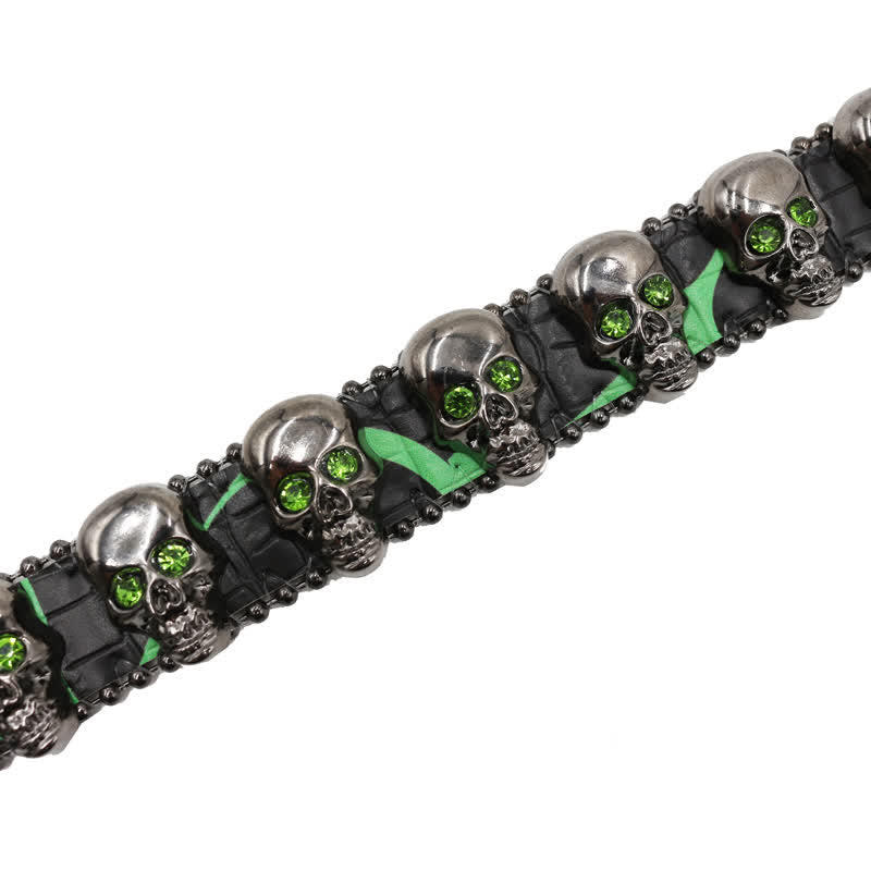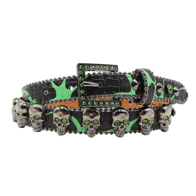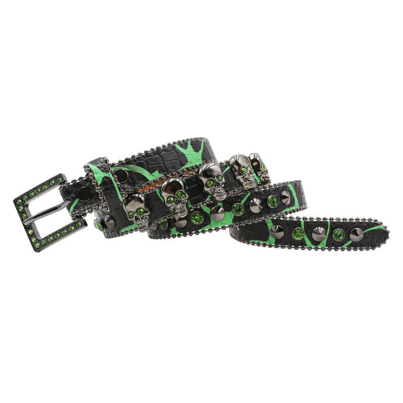 Fancy Gothic Skull Head Rivets Leopard Print Leather Belt - Green - 40 - image 4