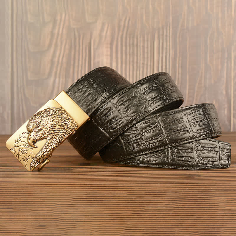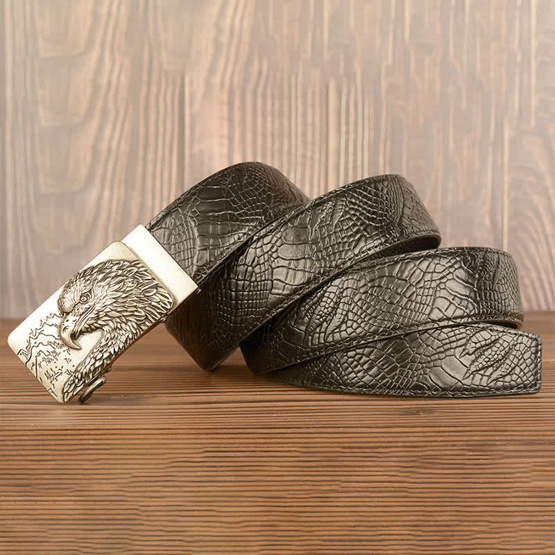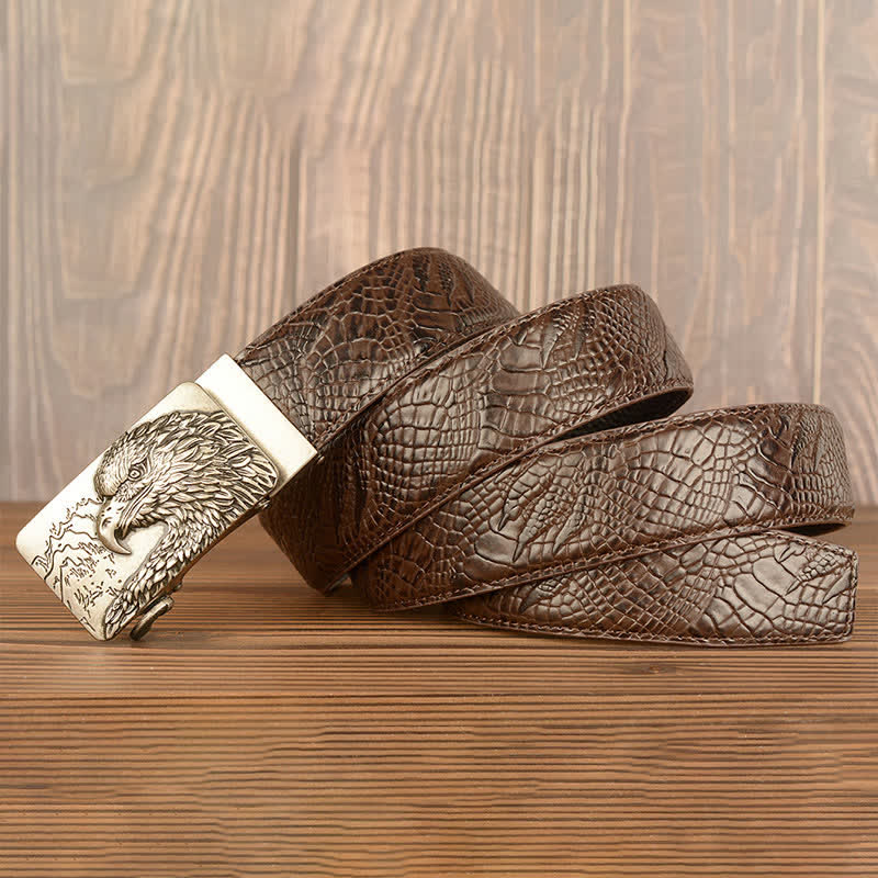 Men's Carved Eagle Crocodile Pattern Leather Belt