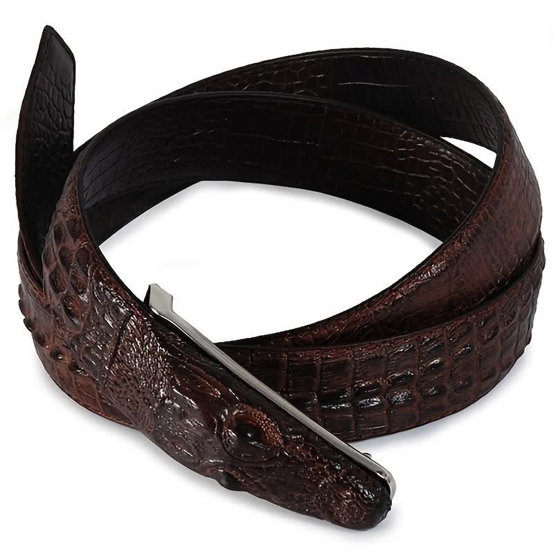 Men's Lifelike Crocodile Head Buckle Leather Belt