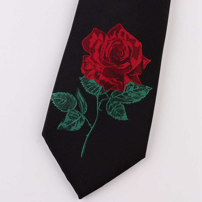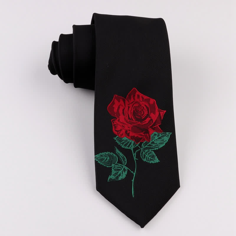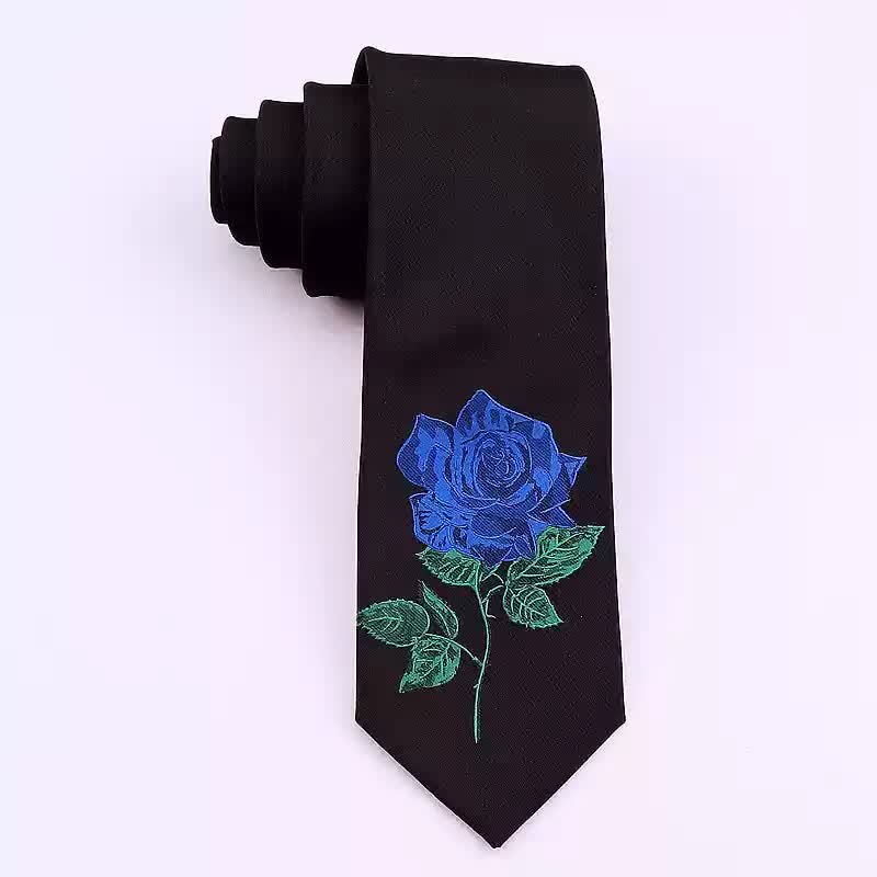 This necktie is embellished with a painting of a rose. It is made to style up modern gentleman's personality at daily meetings and dinners.
