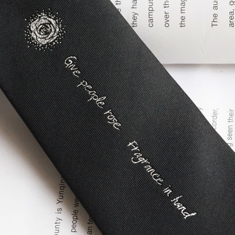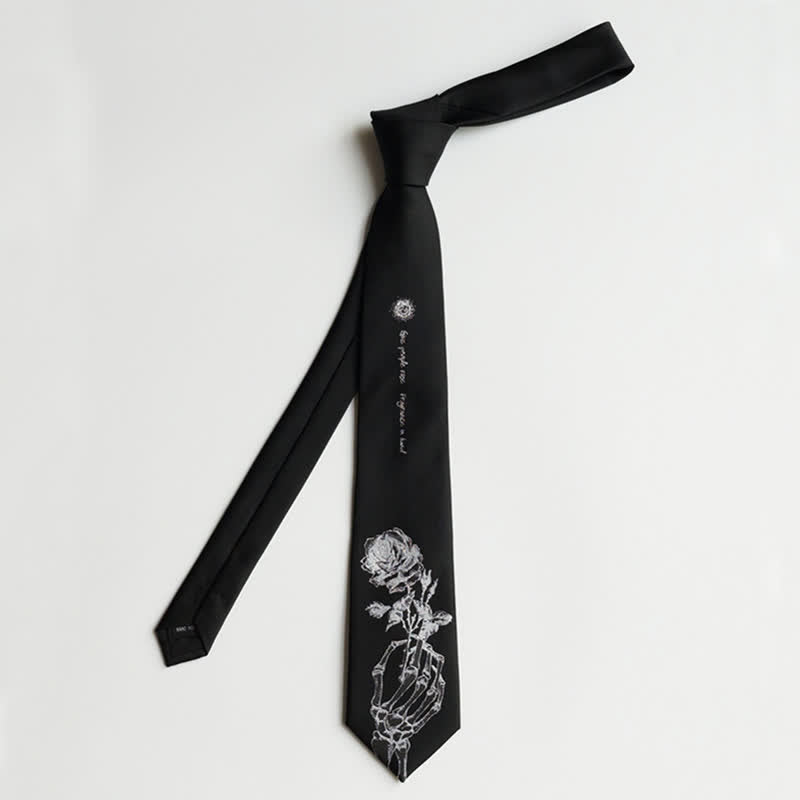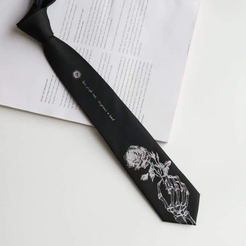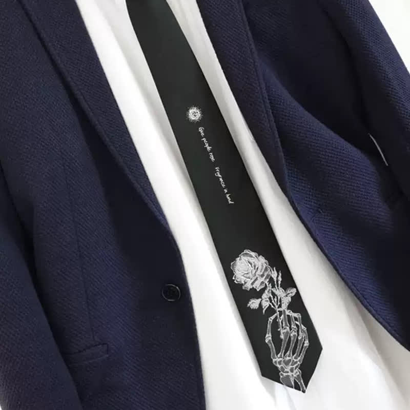 A skeleton holding a rose with the sentence "Give people rose, Fragrance in hand." It is made specifically to style up a gentleman’s attire and make him look dashing.