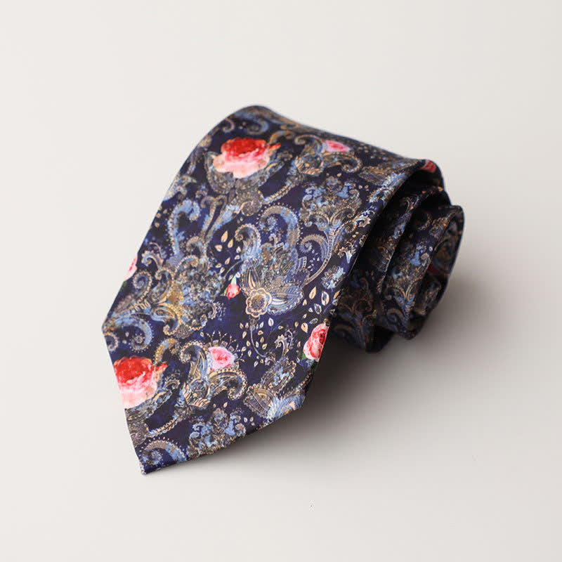 This necktie is a magical mix of fantasy and reality. The detailed red flowers will look great paired with both casual and formal looks.