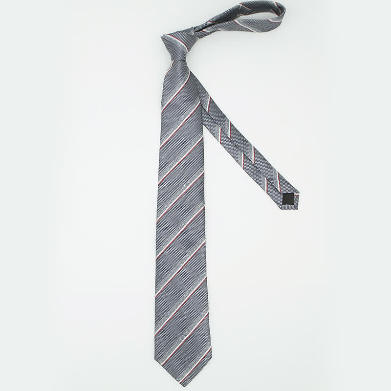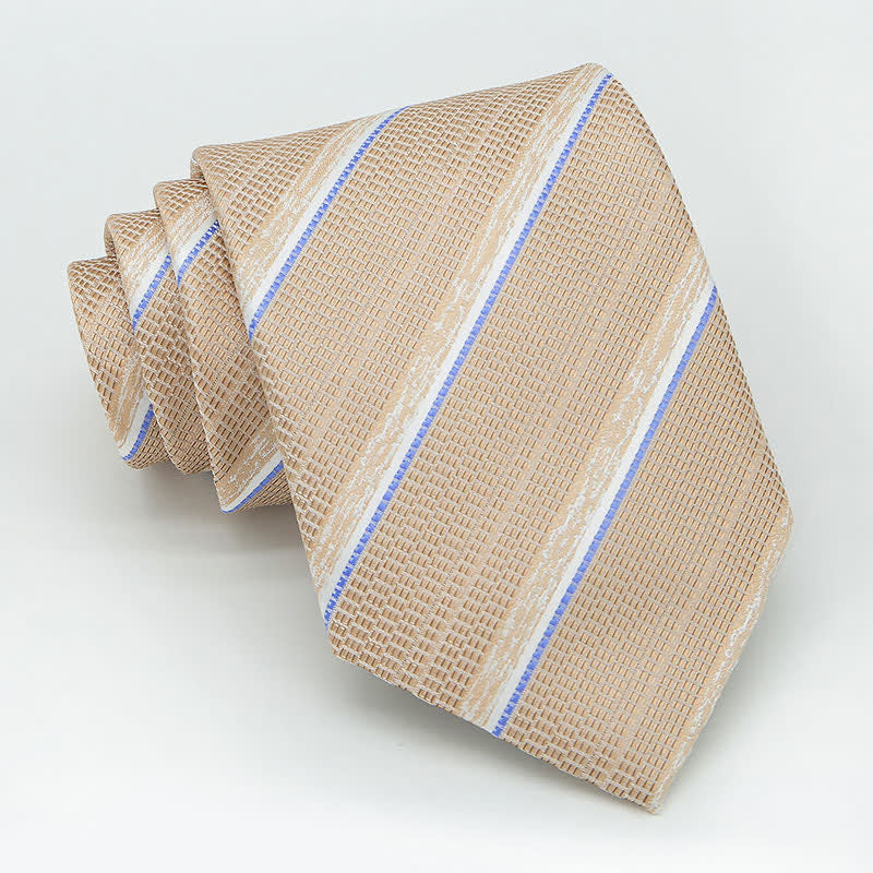 Striped patterm tie, the refreshing colors and modern details lighten up the mood at any time. Wearing this tie is so comfortable and makes you feel so good that you will never want to take it off.