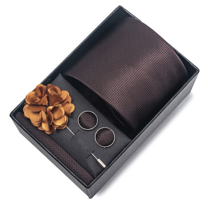 - Includes: Necktie+Pocket Square+Flower Brooch+Cufflink x2