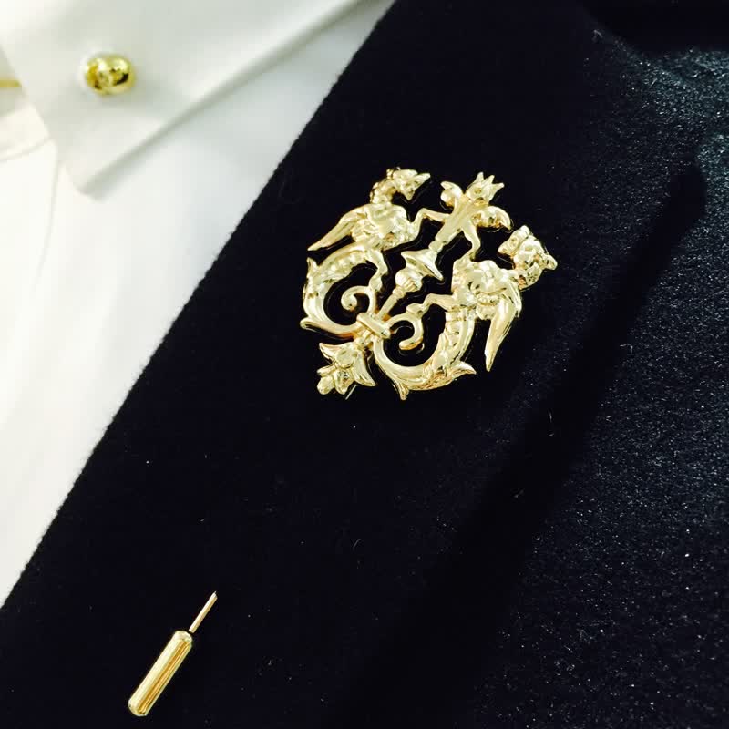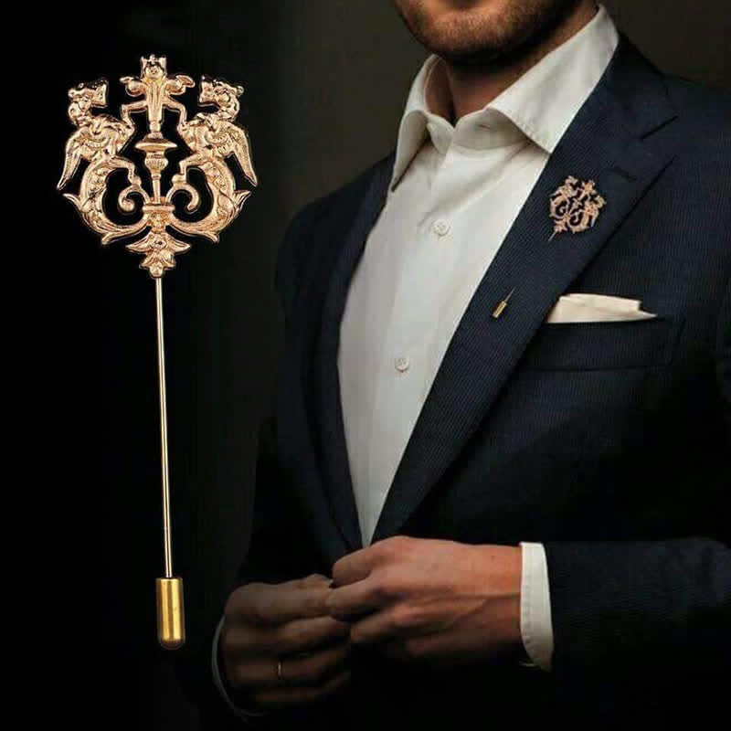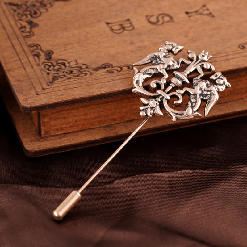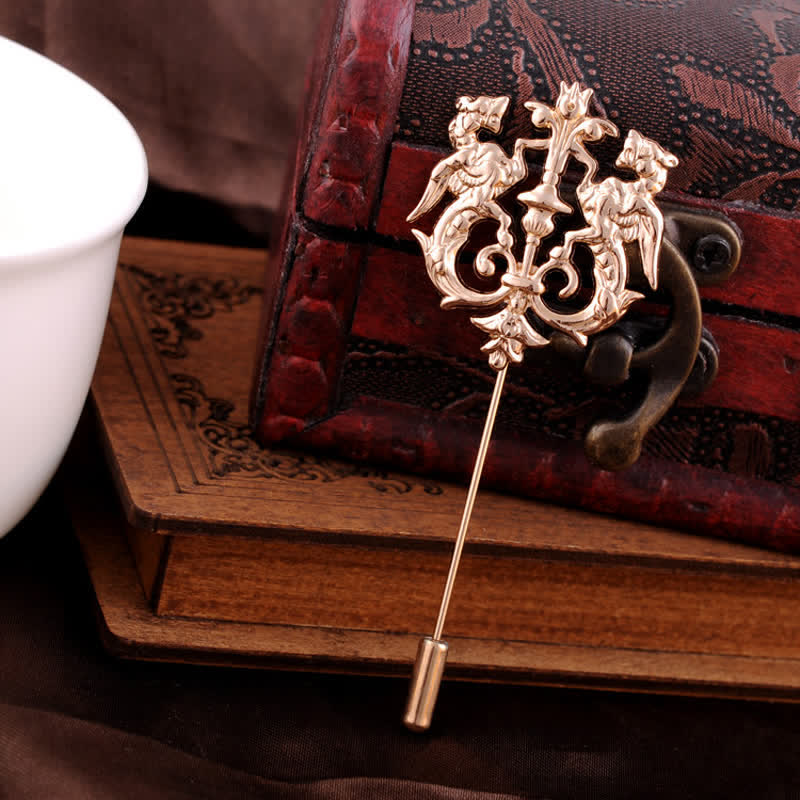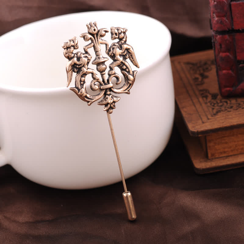 - Hollow brooch pin with double lion decor, vintage and gentle.