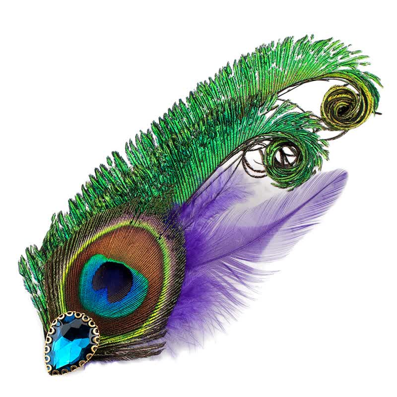 - A really stunning combination of peacock feathers, rhinestones and alloy make a wonderful display.