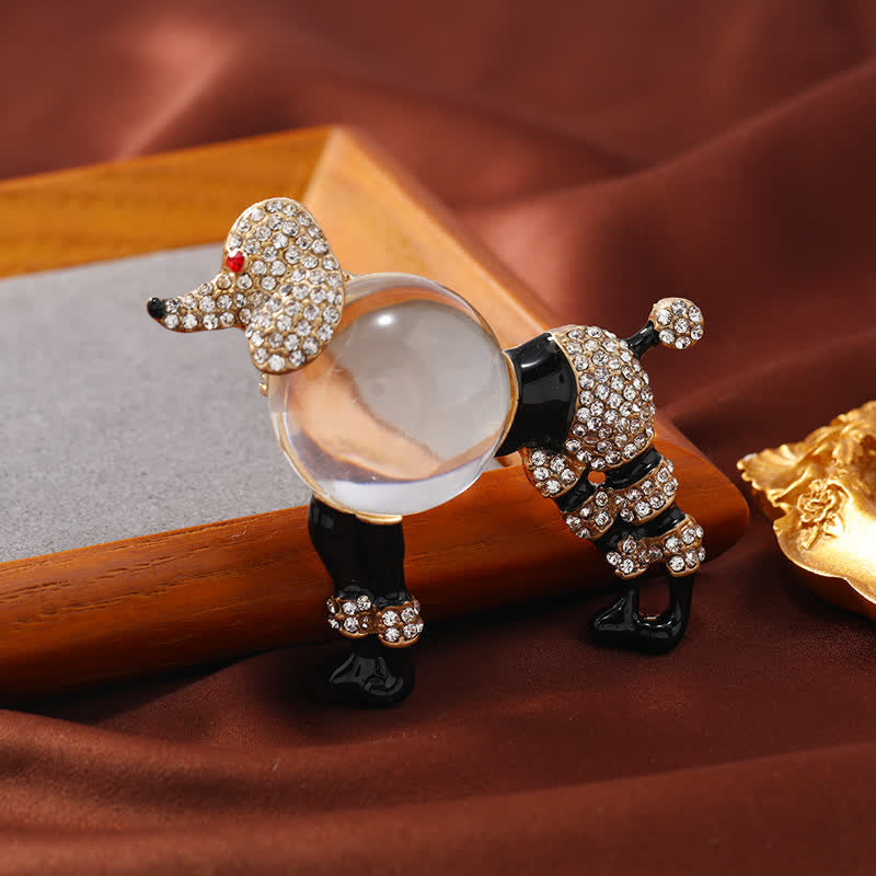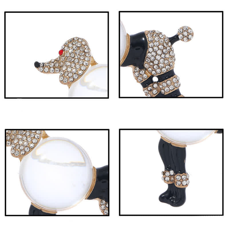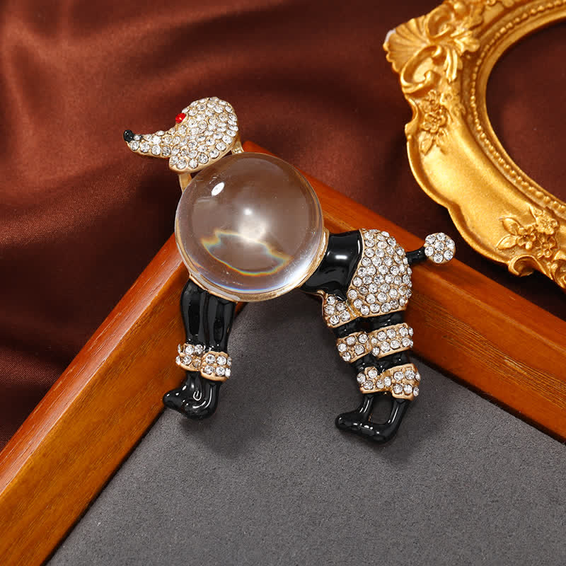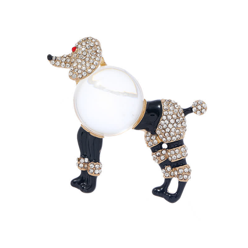 - A ruby eye dots the poodle's face, its tail is pert and upright, adorned with sparking rhinestones.