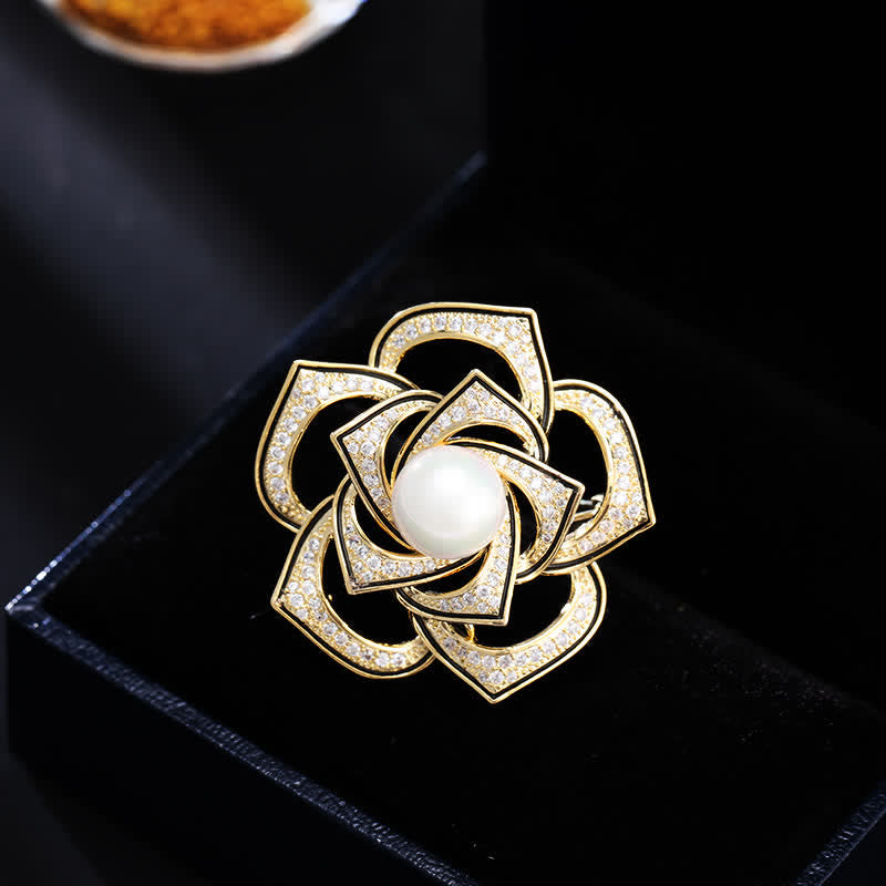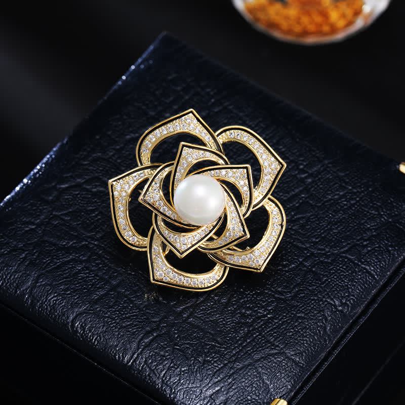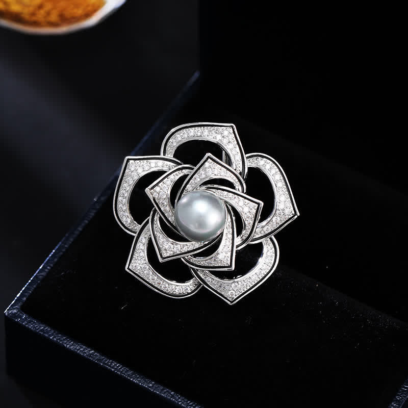 - The mainstone is a freshwater pearl, very smooth and lustrous. The petals are fully inlaid with shiny zircons.