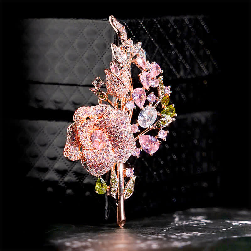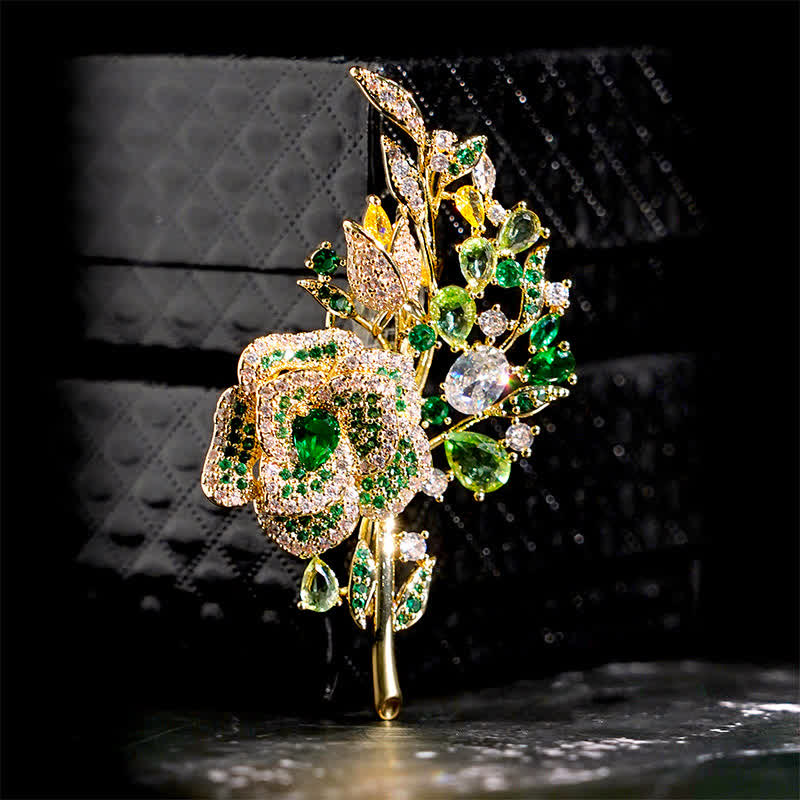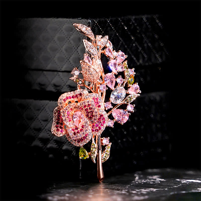 - This elegant brooch looks like a bouquet of flowers! Shimmering zircons act as little blossoms.