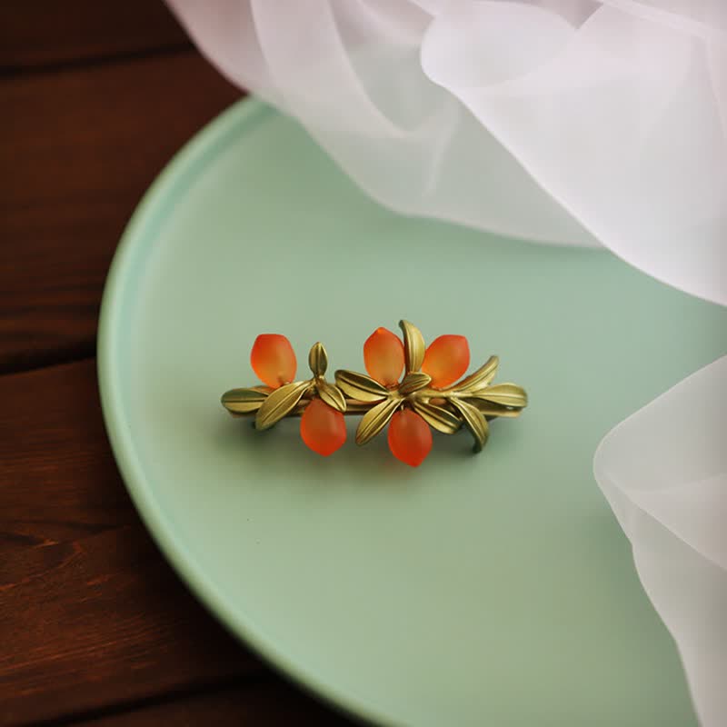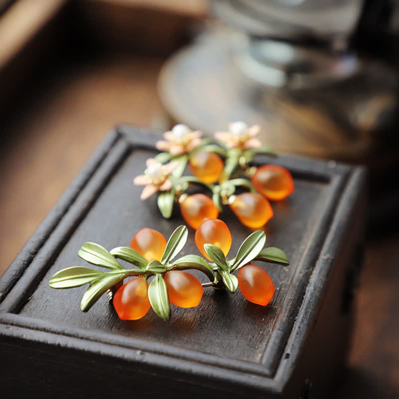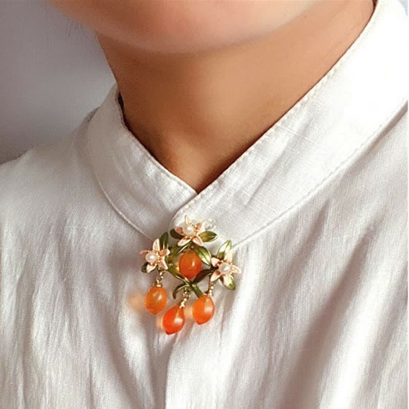 - With little orange berries and blossoms, you’ll fall for the spring vibe that the brooch brings with it.