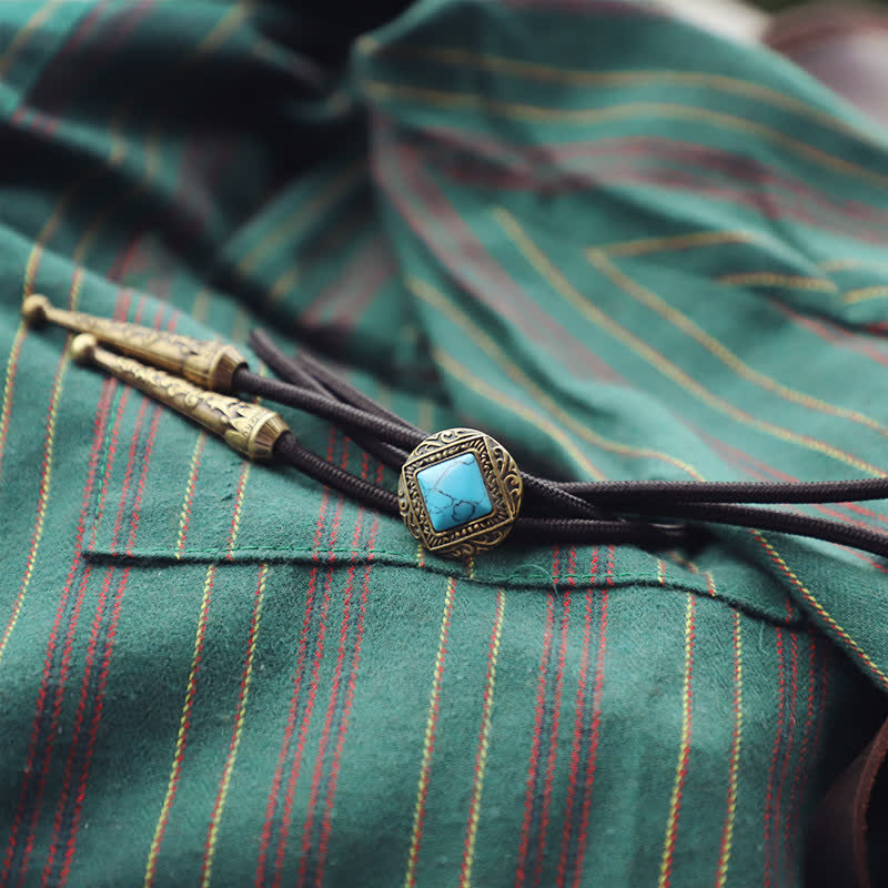The Turquoise Bolo Tie is beautiful and charming for using daily or perfect gift for any purposes. Each rope has one metal tip to prevent fraying. This unique design enhances the drape of the necktie and makes it more beautiful and fashionable.