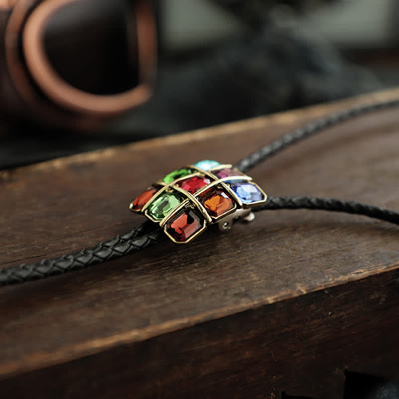Geometric Mosaic Cube Gemstone Bolo Tie