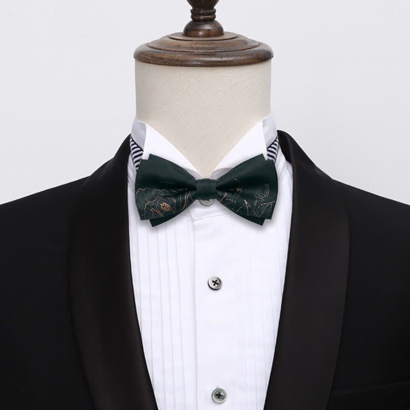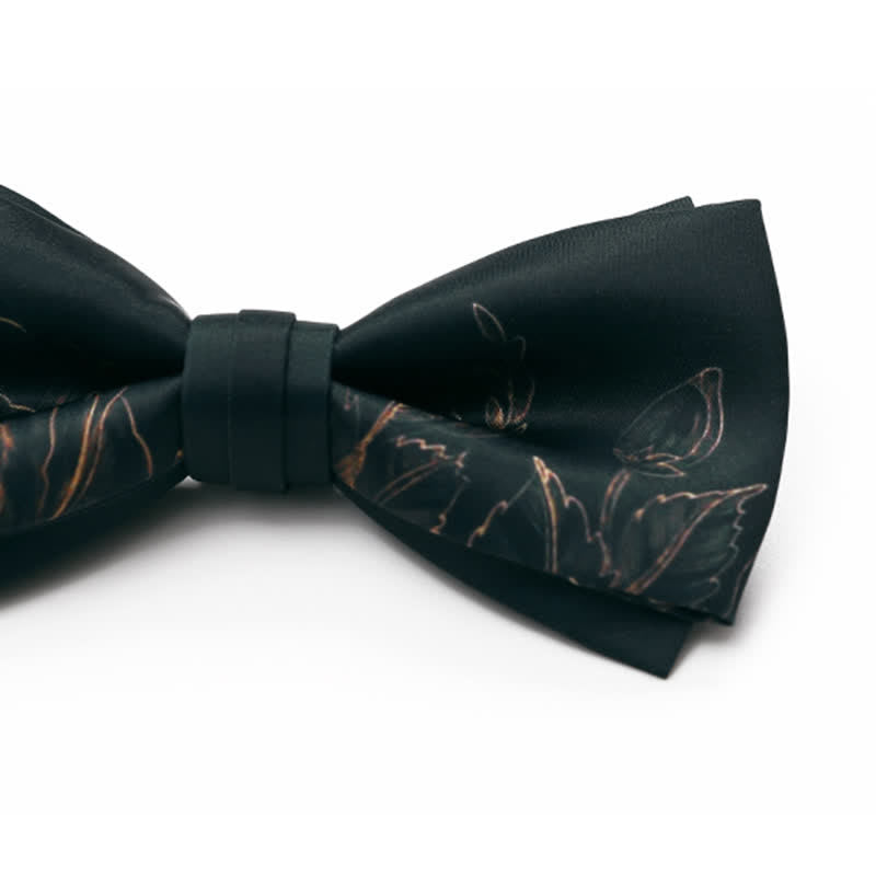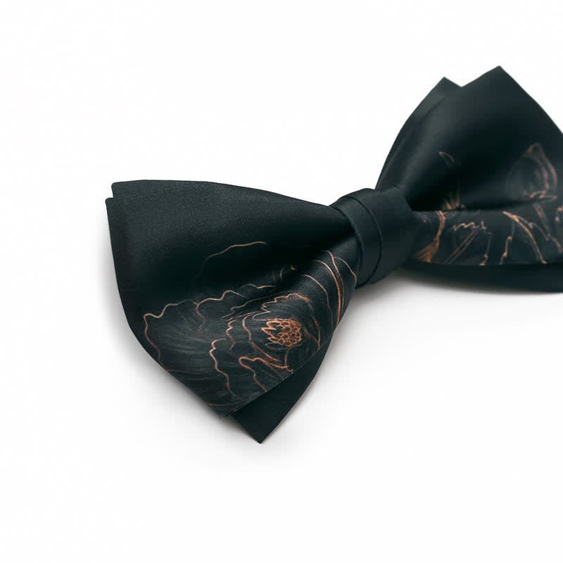 Clearance: Men's Lotus Printing Black Double Layered Bow Tie