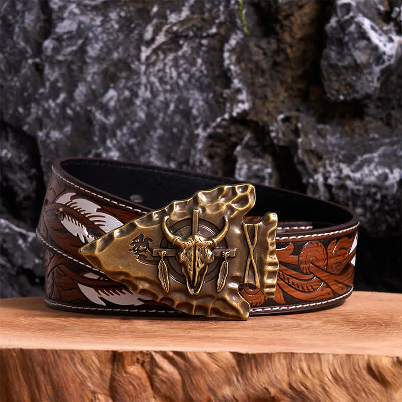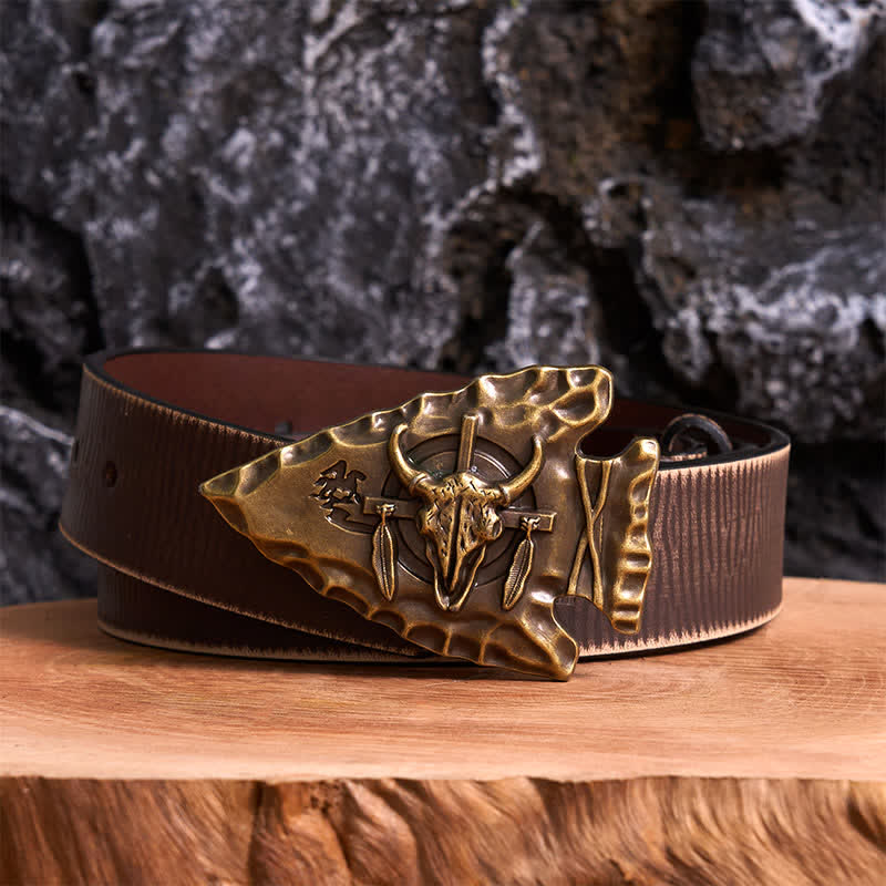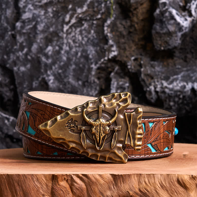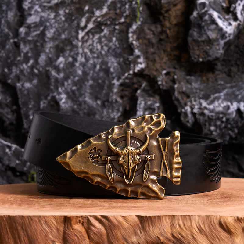 The shape and the design of this belt buckle is unique. It is triangular in shape and the whole body is bronze craved. This bull head buckle is decorated with national flavor, like a fine art. Upgrade your look with this western belt buckle.