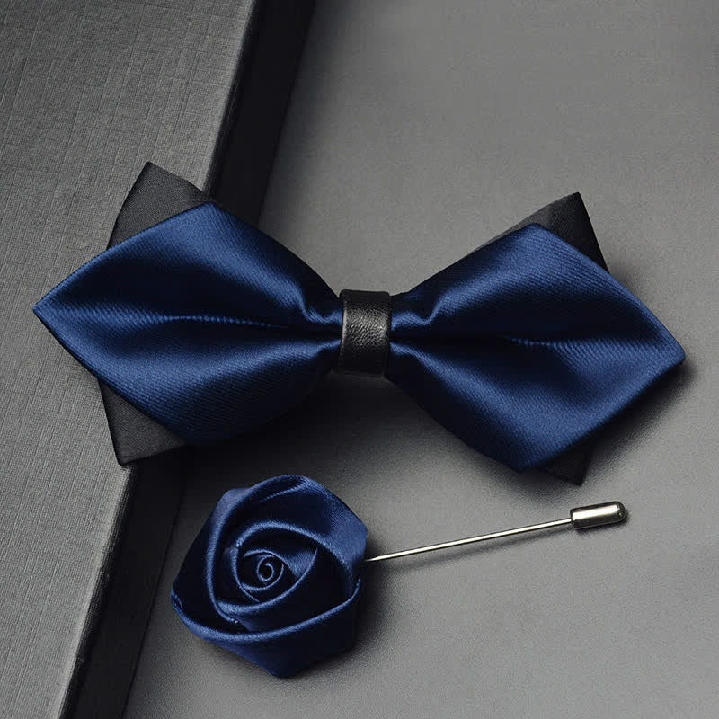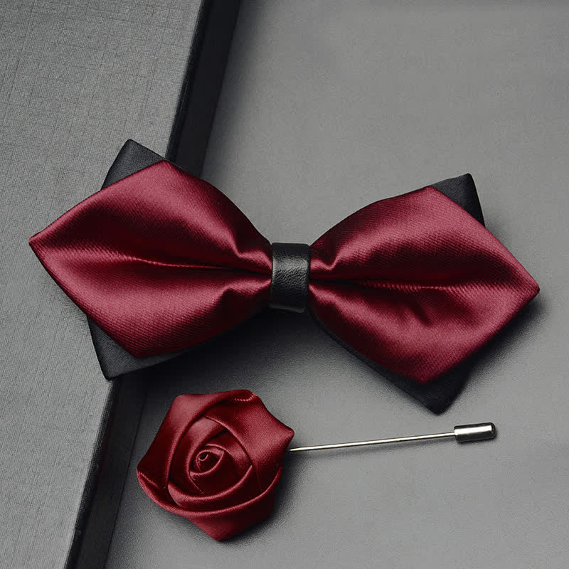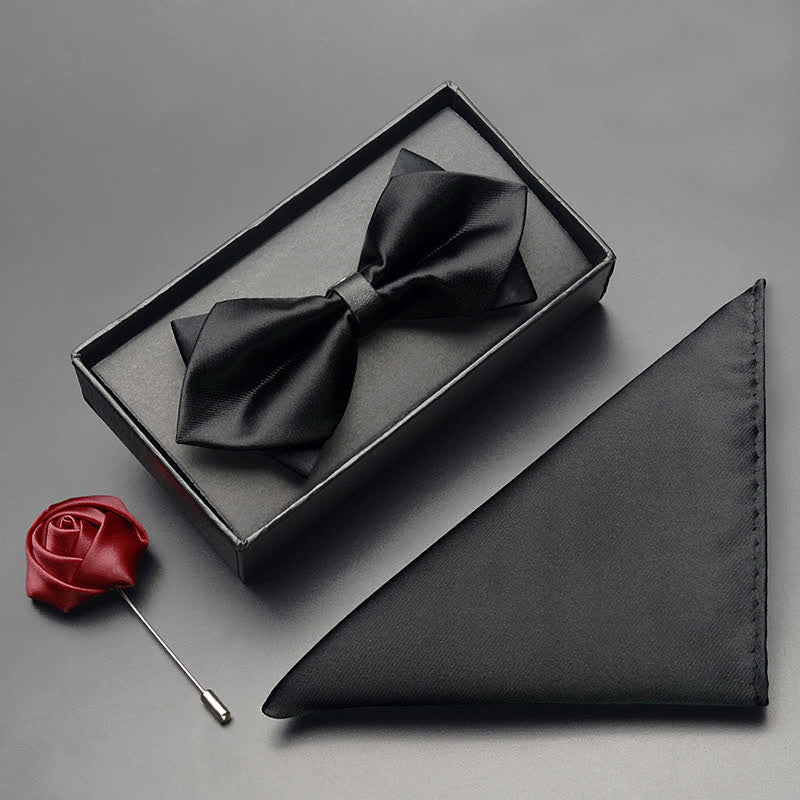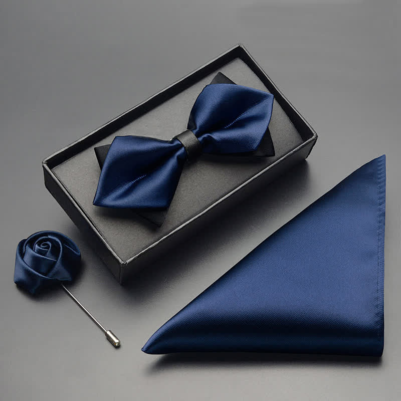 3Pcs Men's Classic Double Layered Pointed Bow Tie Set