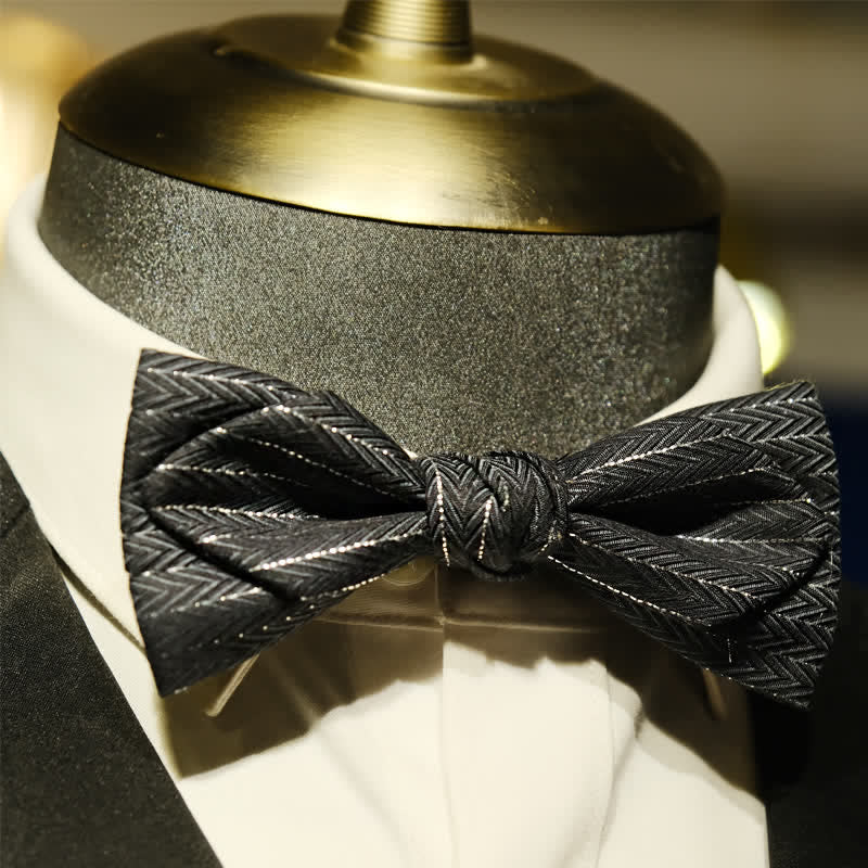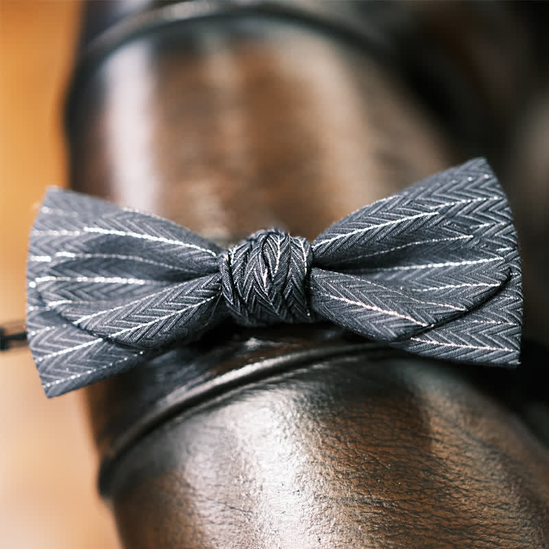 - Striped gray bow ties are a constant in our everyday wardrobe.
