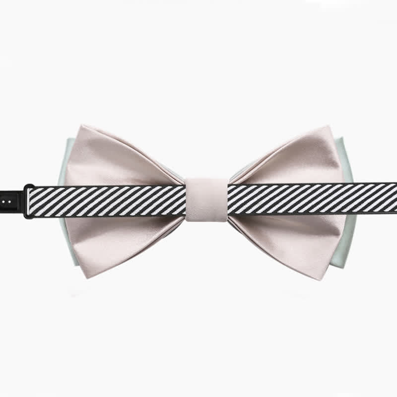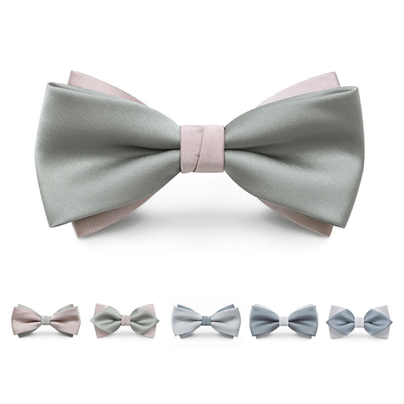 - This delicate two-tone double-layer bow tie is a fashion savant's dream.