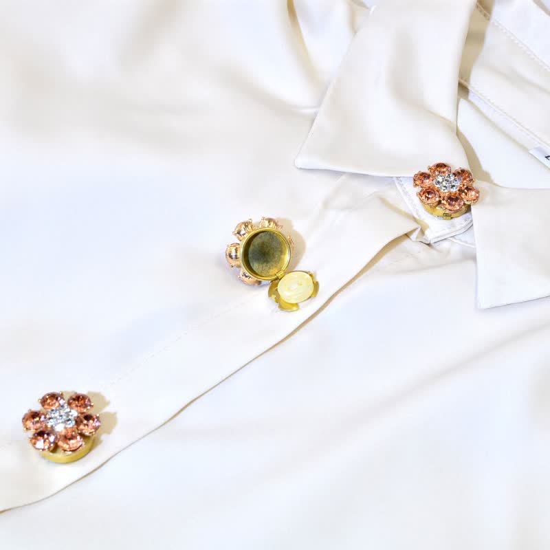 1 Pair Shiny Pearl Rhinestone Snap-On Button Covers - Colorful - image 6