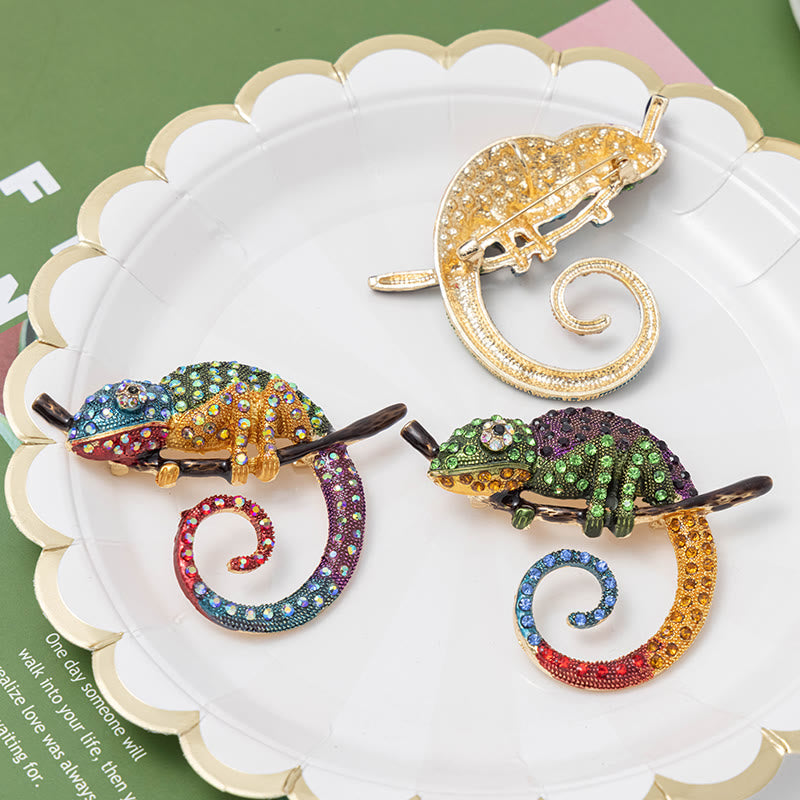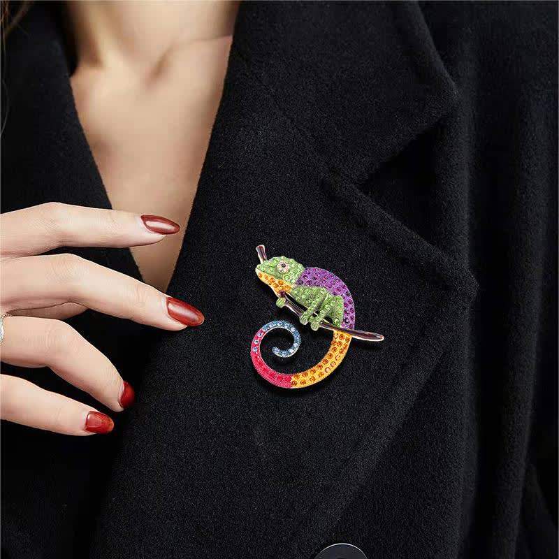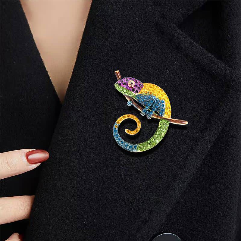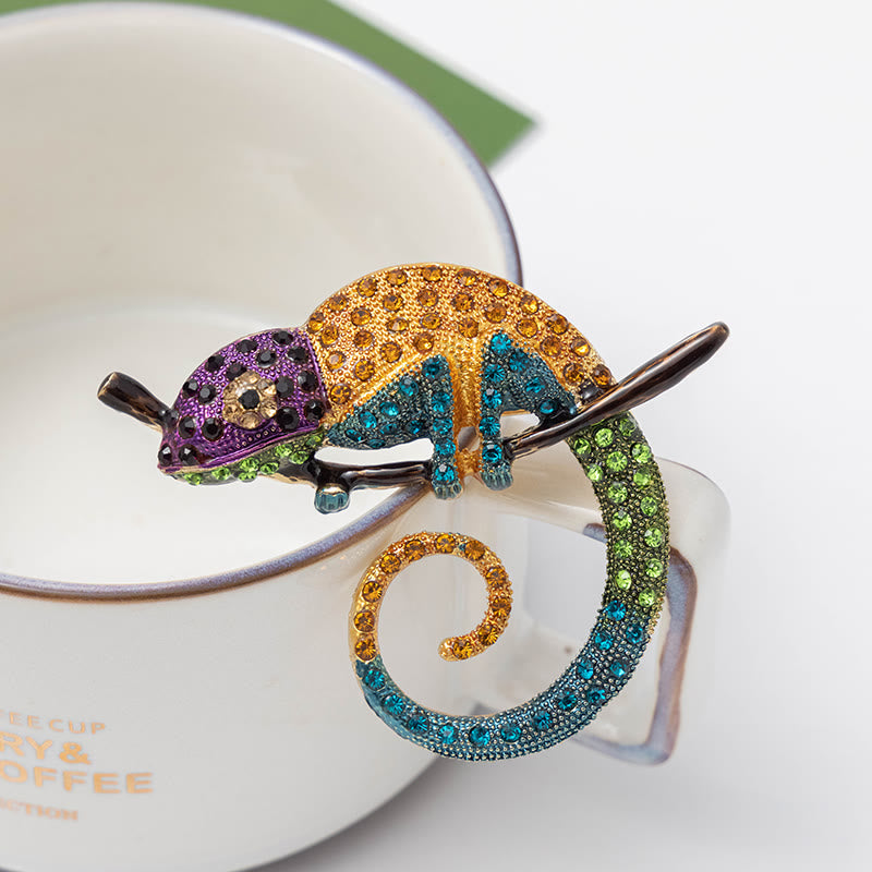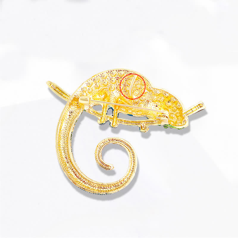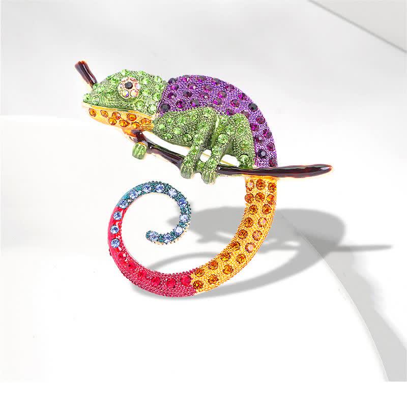 • This brooch shape featurs a retro lizard body whose webbed feet move in an articulated design.
