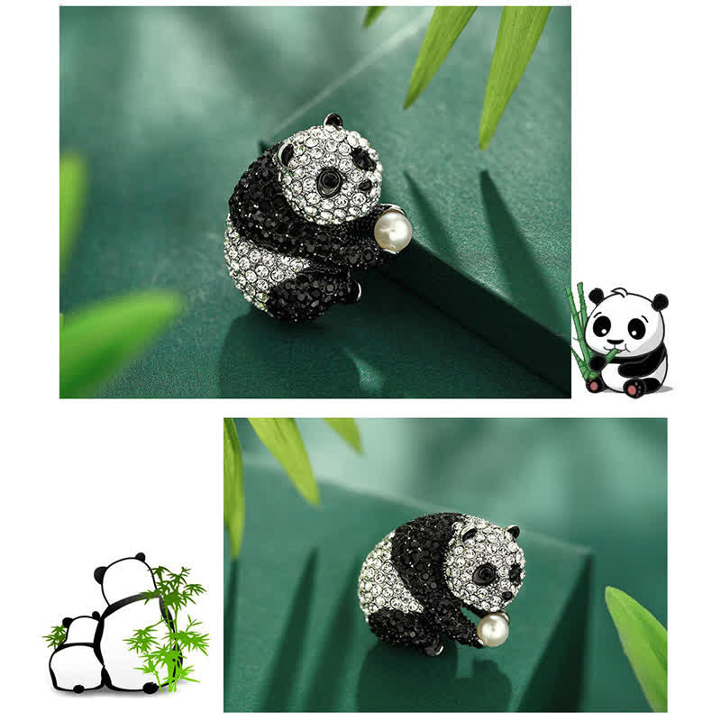 • This panda brooch glitters with black and white rhinestones against a silver or gold tone background.