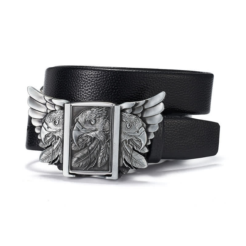 Men's Eagle Wings Relief Leather Belt With Hidden Kerosene Lighter