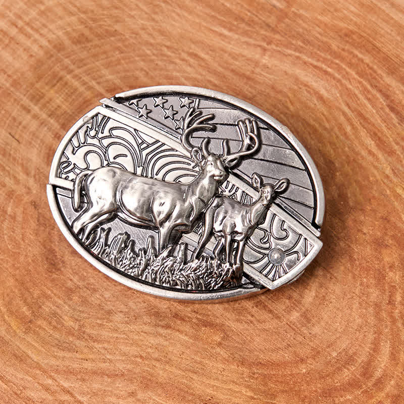 - There are deers with the American flag acting as the backgound.
