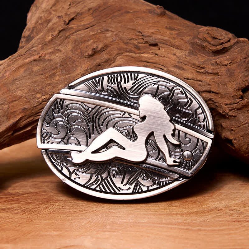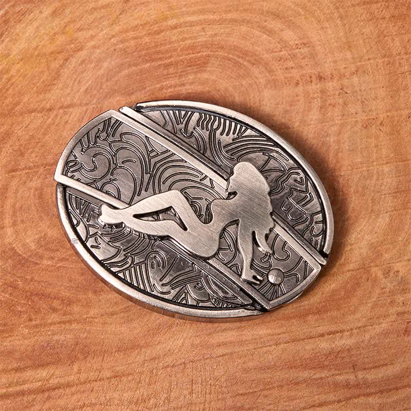 Men's DIY Lady Silhouette Hidden Folding Knife Leather Belt
