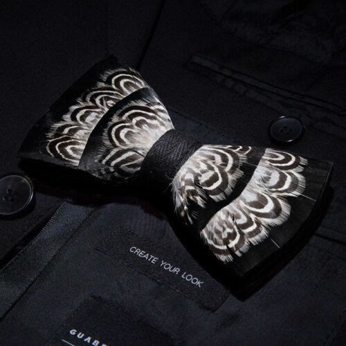 Black & White Tiger Stripes Feather Bow Tie with Lapel Pin