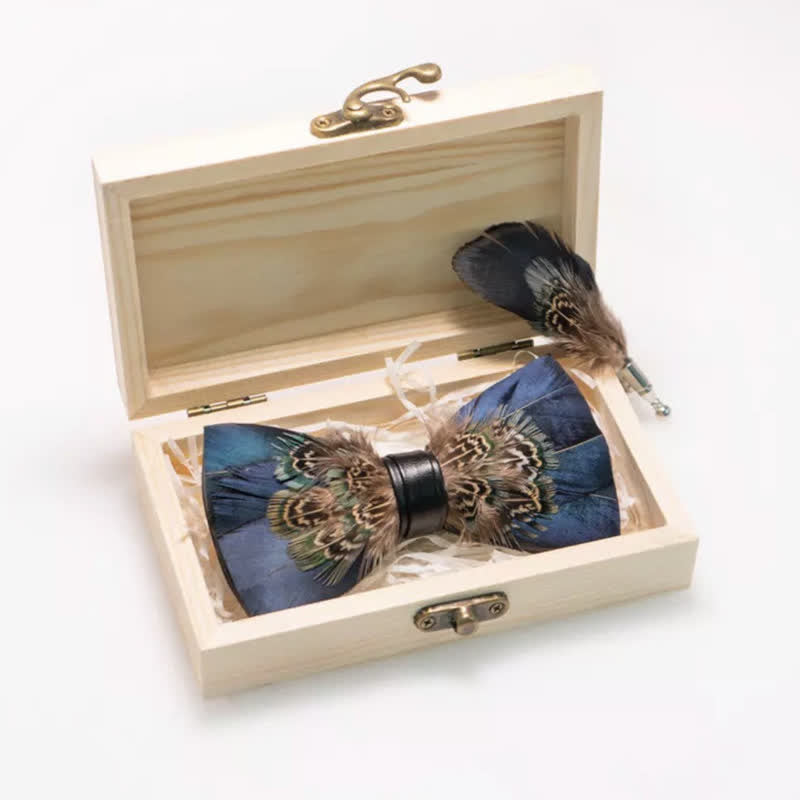 • Features: The feather bow tie features a green and brown color palette. This design is both vintage and vibrant.