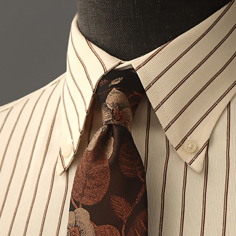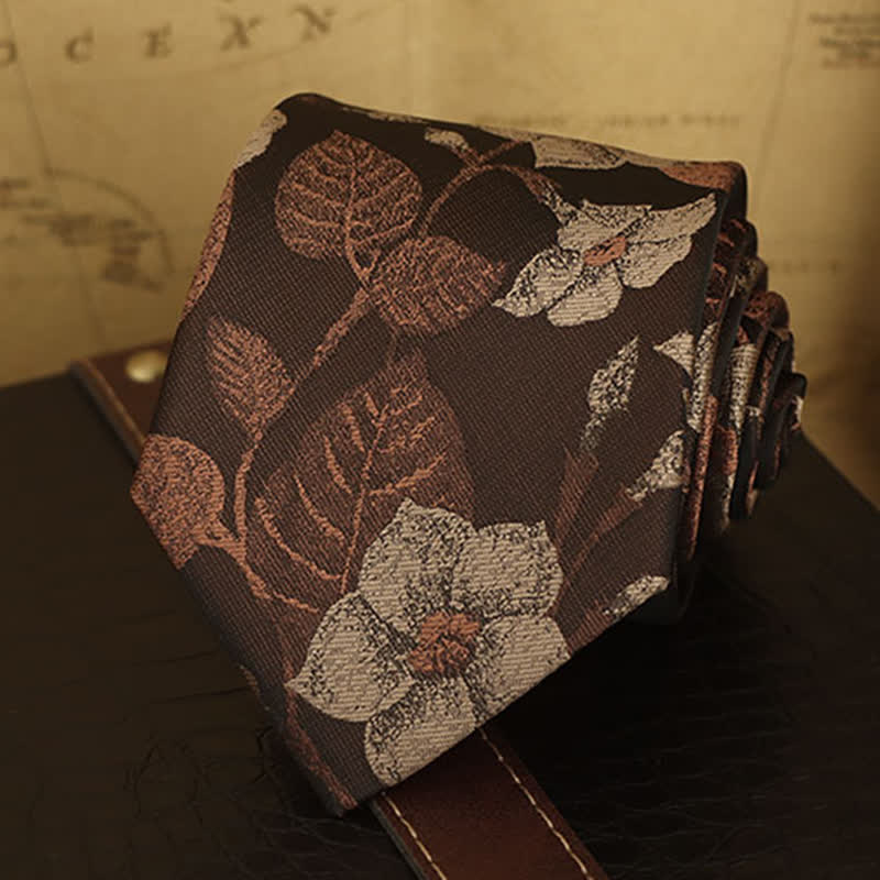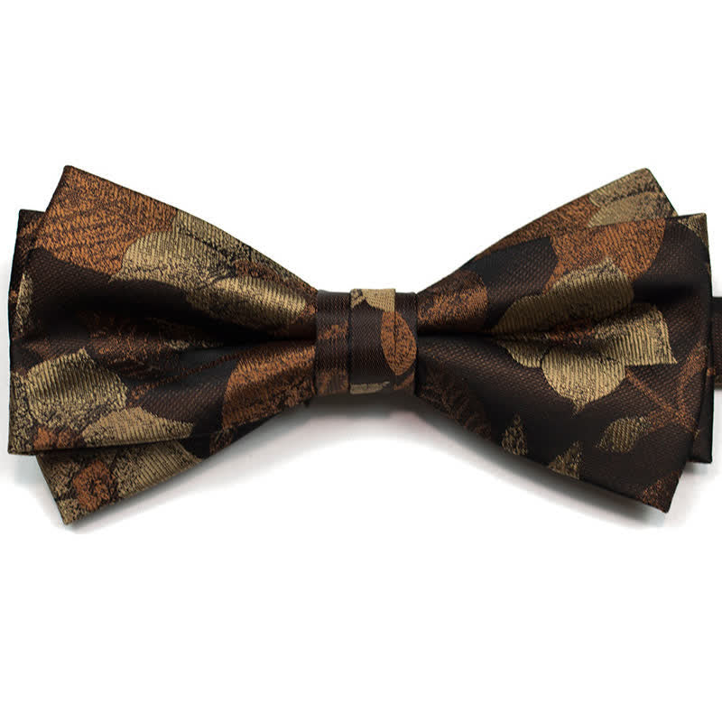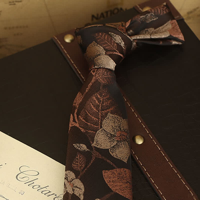 The necktie or bowtie was glowed with autumn colours. It has a very vintage look with brown leaves and flowers pattern that can be dressed up or down for any occasion. Whether you're headed to a nice dinner or just to the office, it can transform your attire into a work of art.