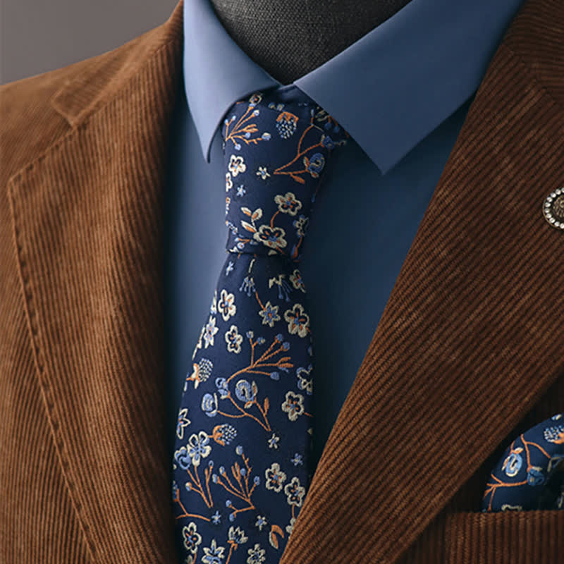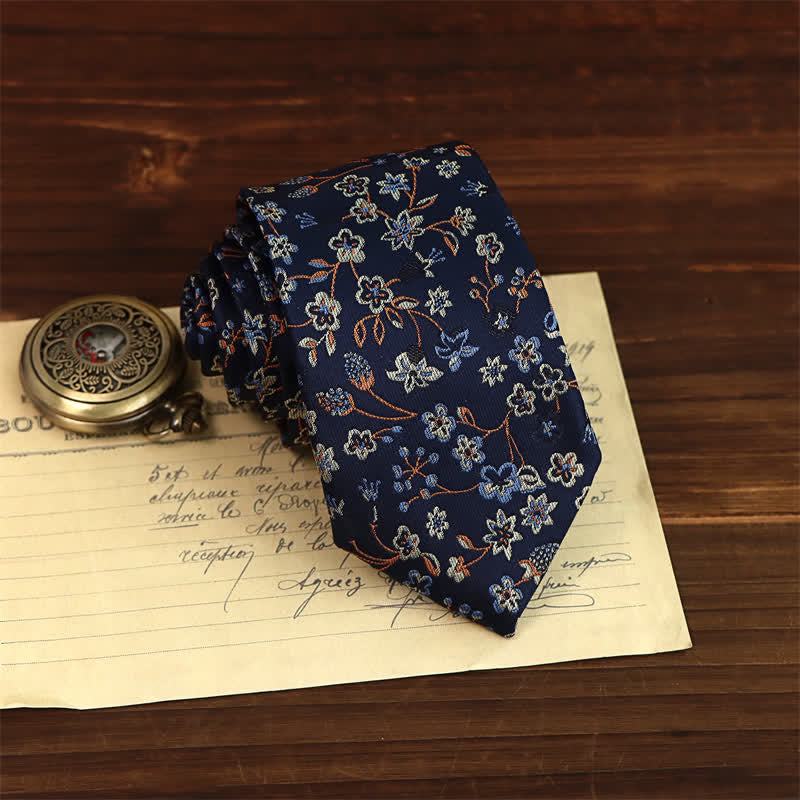 This necktie emulates floral fun, showcasing mini blue and white flowers decorating a mysterious navy fabric. Embrace your warm side with this beautiful floral tie.