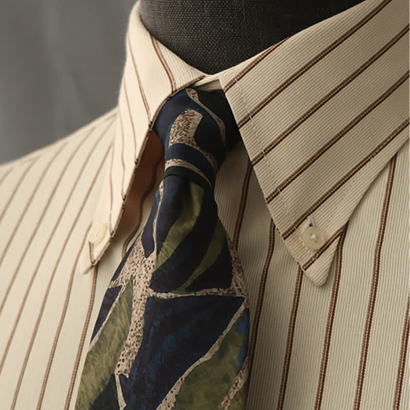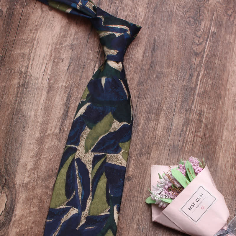 The color of the necktie is a navy and green hue, a shade that exudes personality and sophistication. The subtle pattern creates a sense of depth and texture.