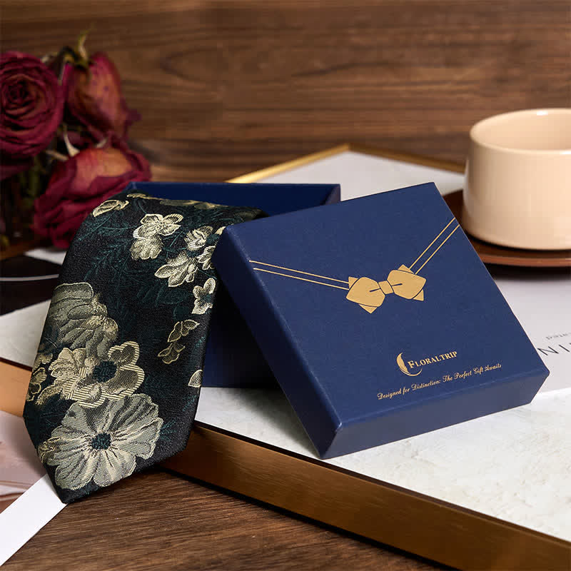 Men's Pine Forest Green Floral Necktie Pocket Square