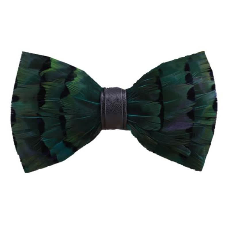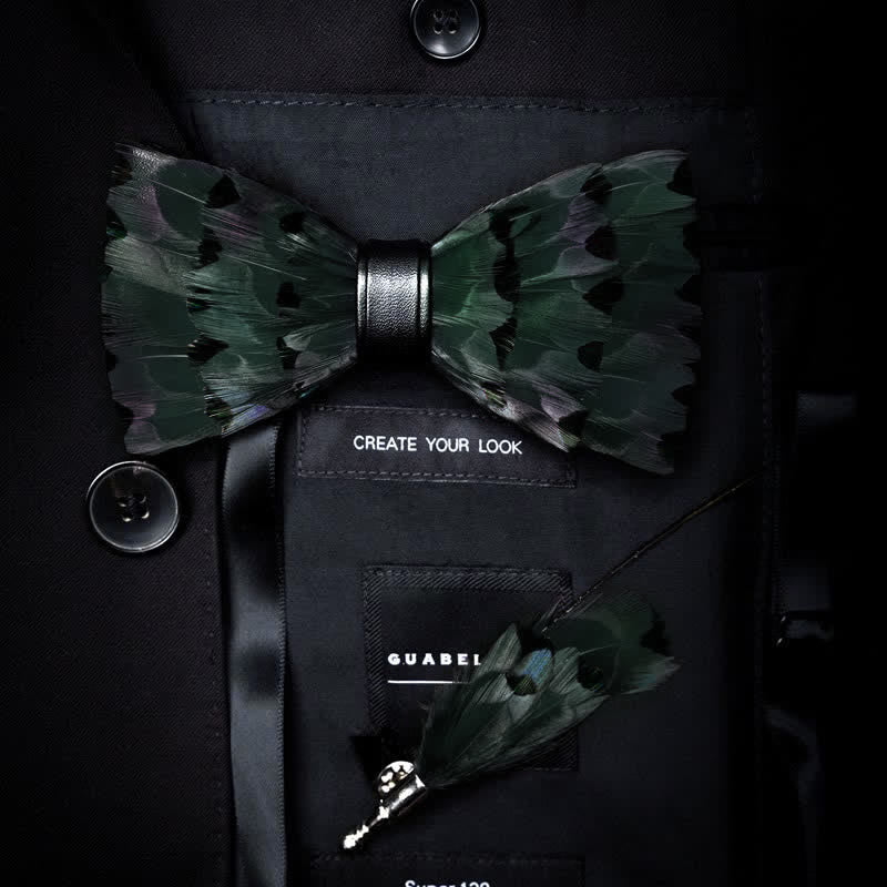 - Features: This Dark Green bowtie is set with layers natural feather, has a very fashionable flavor. It adds a elegance and charm to the dull neck. It is a must for men's wardrobes!