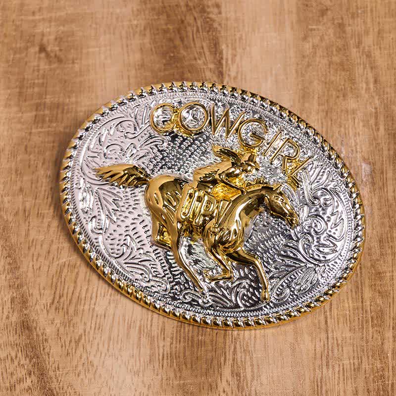 Adopts brilliant silver paired with gold tone, This rodeo western cowgirl belt buckle is unique and stylish, It will highlight your personality and become a highlight of your overall outfit.