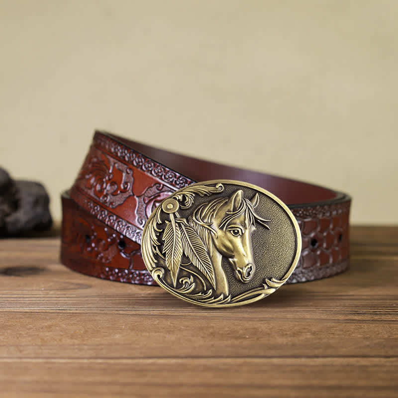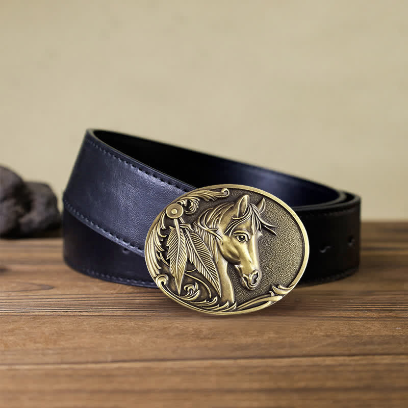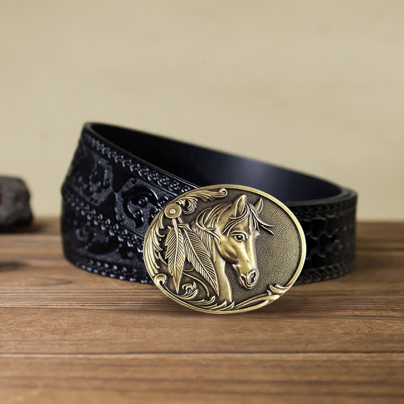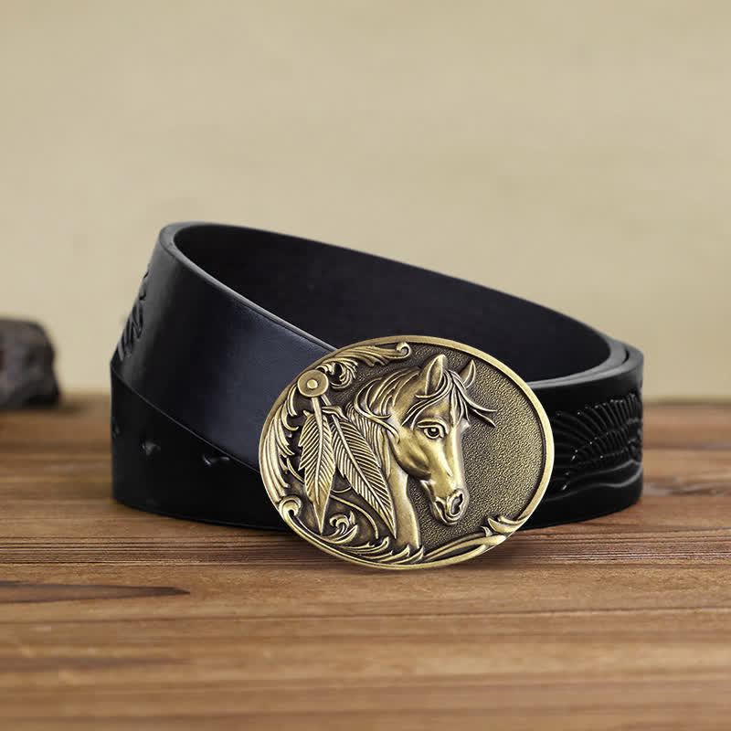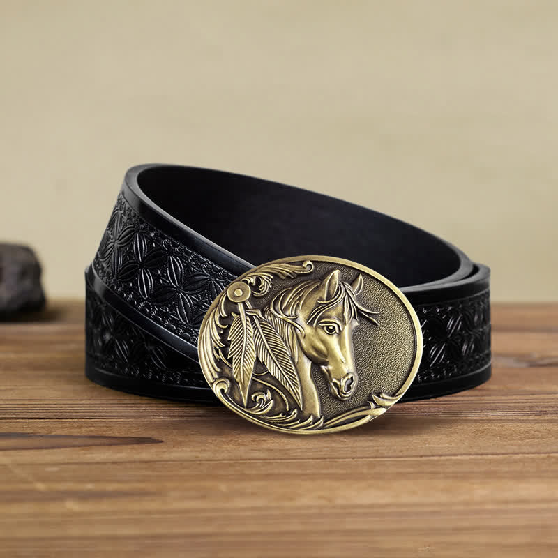 The horse gives mankind the power to defeat the enemy and overcome the weakness, and its beautiful flexibility brings human life warmth. This special crafted vintage engraved buckle with 3D retro horse pattern, is an eye-catching retro accessory.