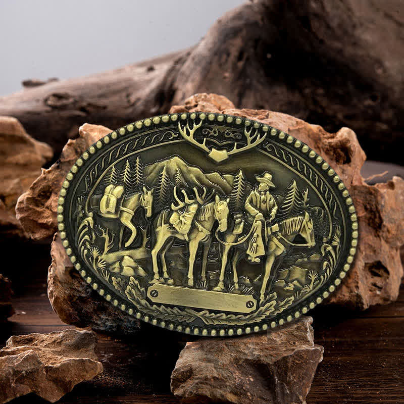 Men's DIY Cowboy Knight Leading Horse Buckle Leather Belt