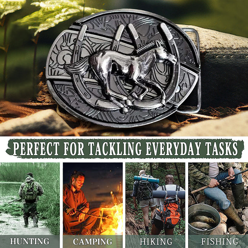 Men's DIY Galloping Horse Hidden Folding Knife Leather Belt