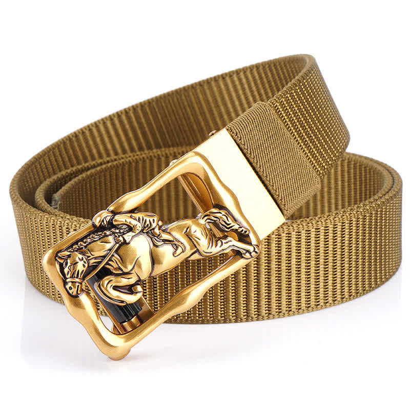 - There is an automatic buckle on the back of the buckle head, the back of the belt has card slots and external wear band.
