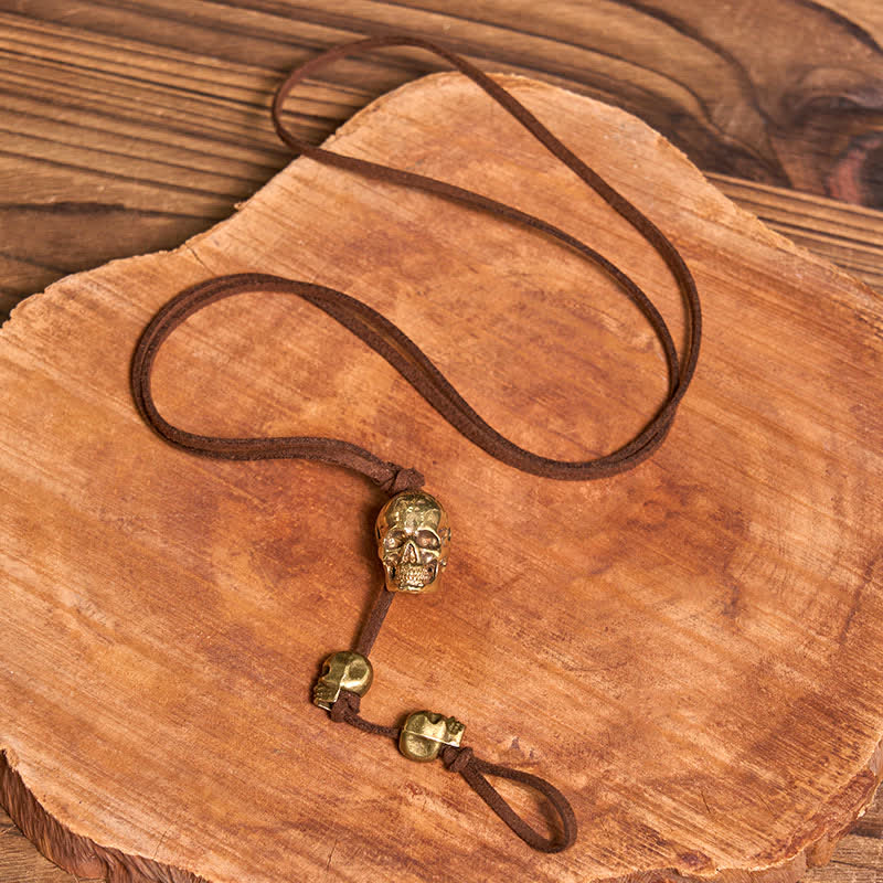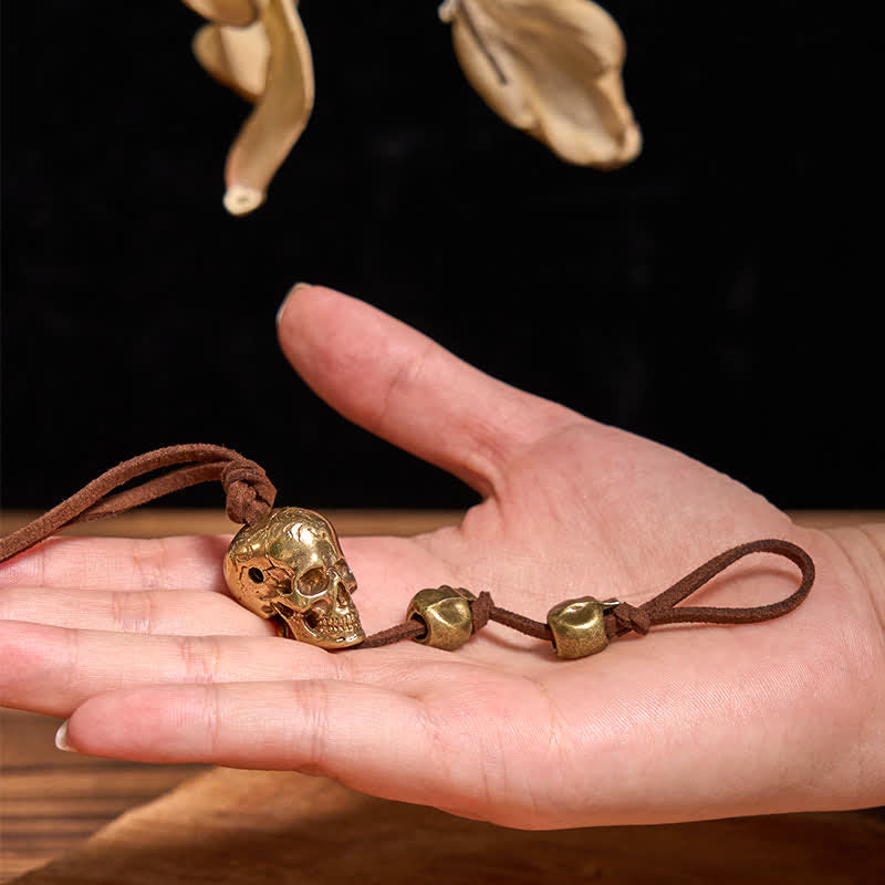 Motorcycle Accessory Brass Skull Head Leather Keychain