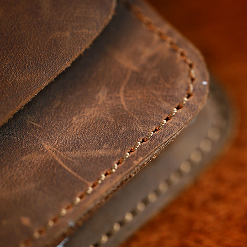The leather phone holster allows quick access to your phone (this item not includes the phone), sliding in and out easily; with belt loops to fit any standard size belt. It can be securely fastened around your waist and the simple and stylish style can be worn with any trousers.