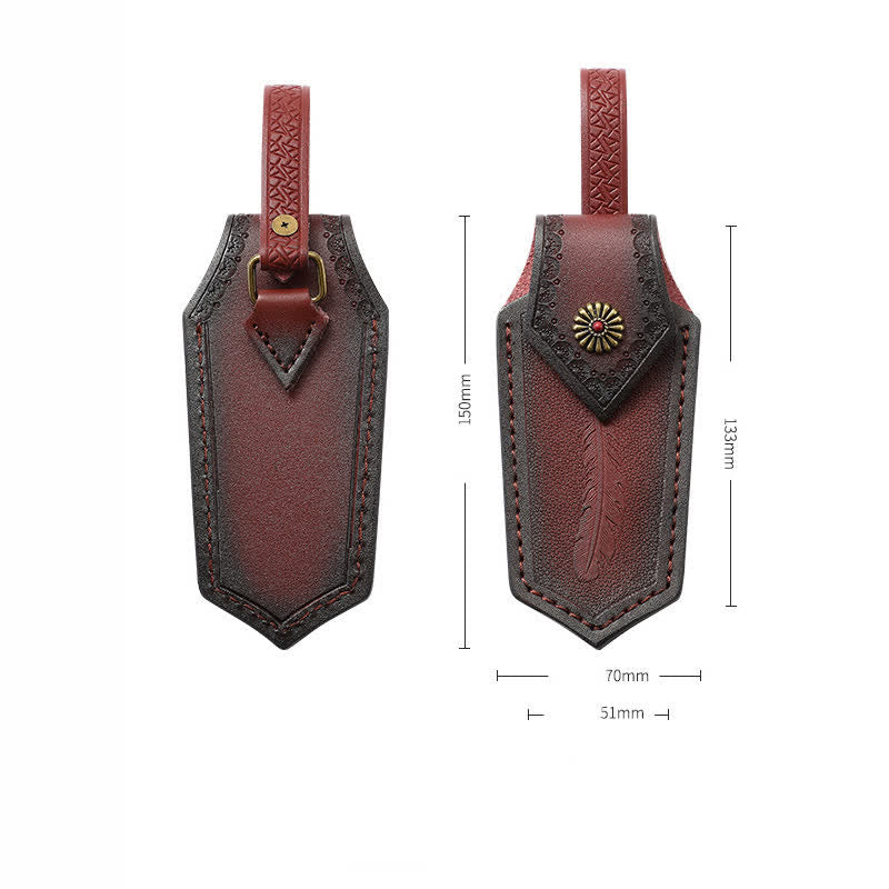 Flip Cover Feather Embossing Folding Knife Sheath Leather Belt Bag - Dark Red - image 9
