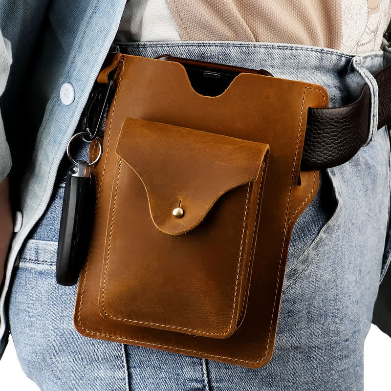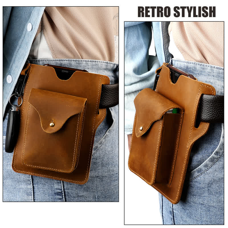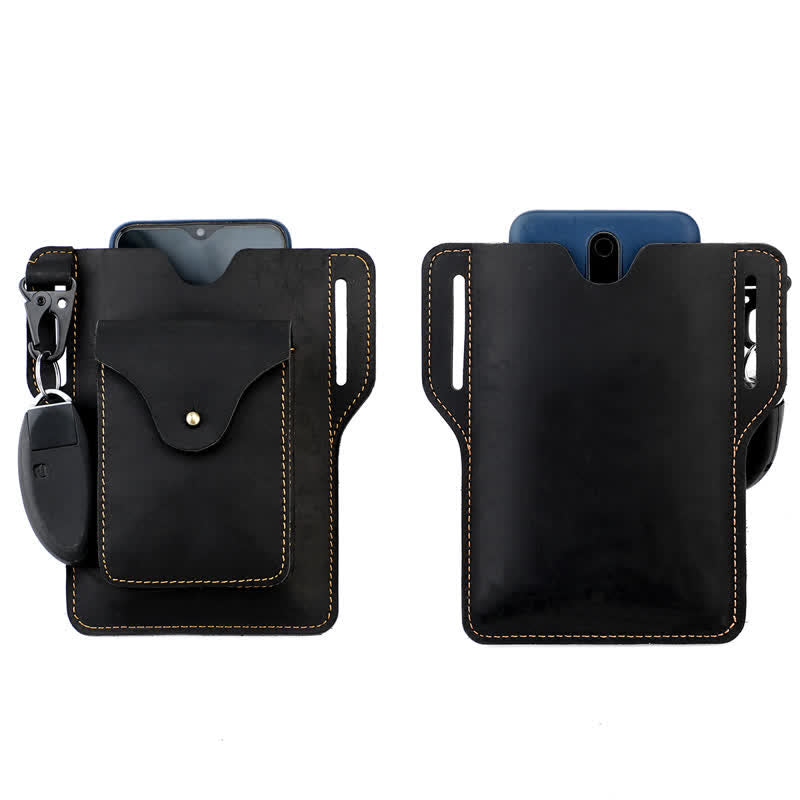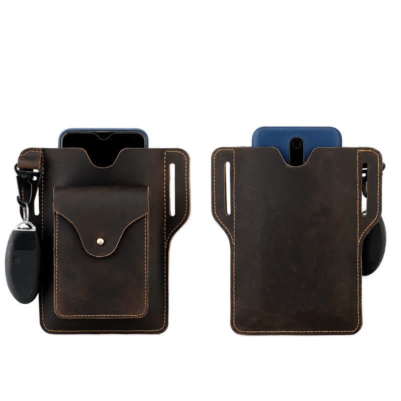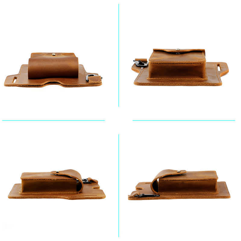 Designed to fit most smartphones, this belt bag provides a snug and secure fit to protect your device from accidental drops and scratches. Keep your essentials close, this bag can hold mobile phone, credit cards, cigars, EDC tools, pens, and more.