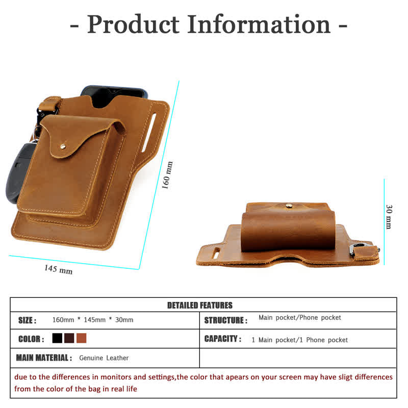 - Structure: 1 Main Pocket, 1 Phone Pocket, 1 Key Organizer