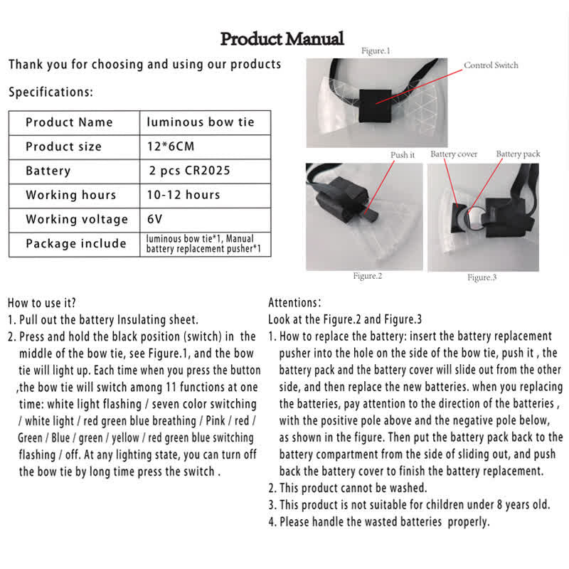 Light up Bow Tie, classy, and fashionable bow ties that will draw tons of attention! Luminous Glowing Bow Tie is perfect for indoor or outdoor performance. Widely used for weddings, parties, carnival and many other special days.