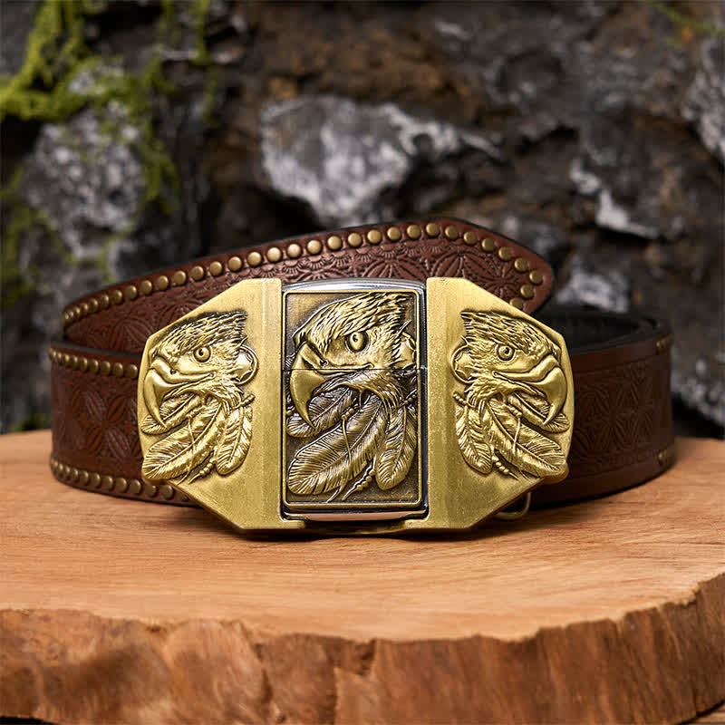 - Flip style lighter is inconspicuous when worn, and features a beautifully carved triple eagles.