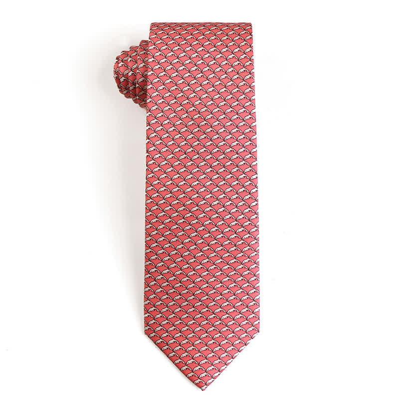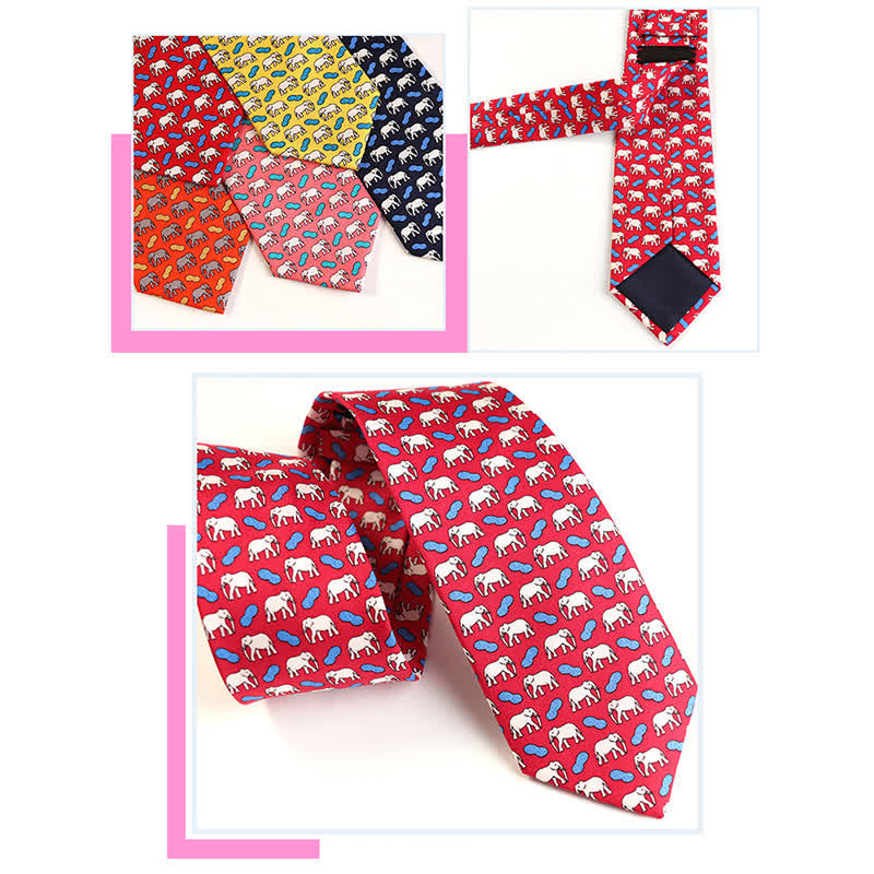 A lively animal pattern dances across the printed silk necktie. Thanks to its classic colorway and the natural shine of pure silk, this new design accentuates any elegant wardrobe.