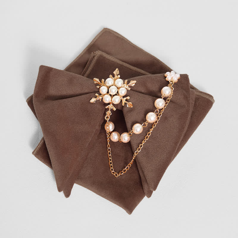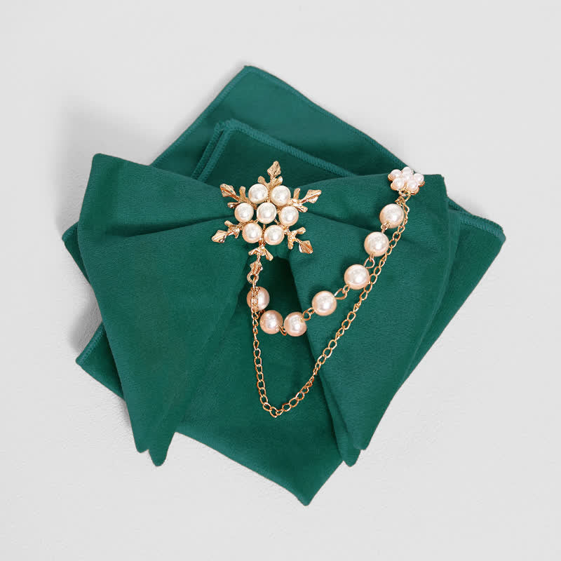 Men's Snowflake Pearl Chain Velvet Bow Tie Pocket Square