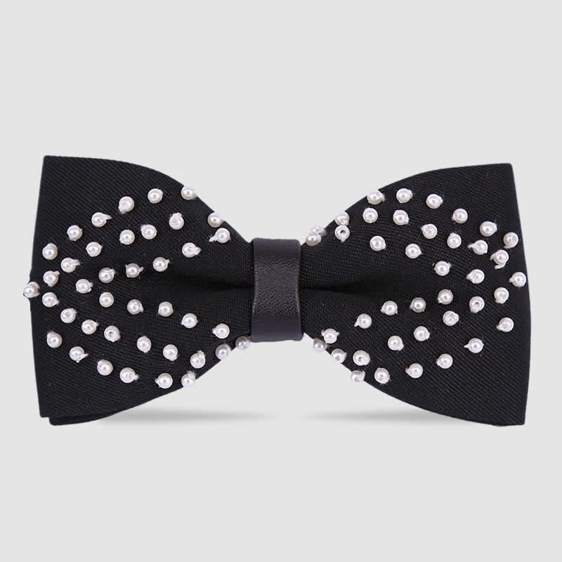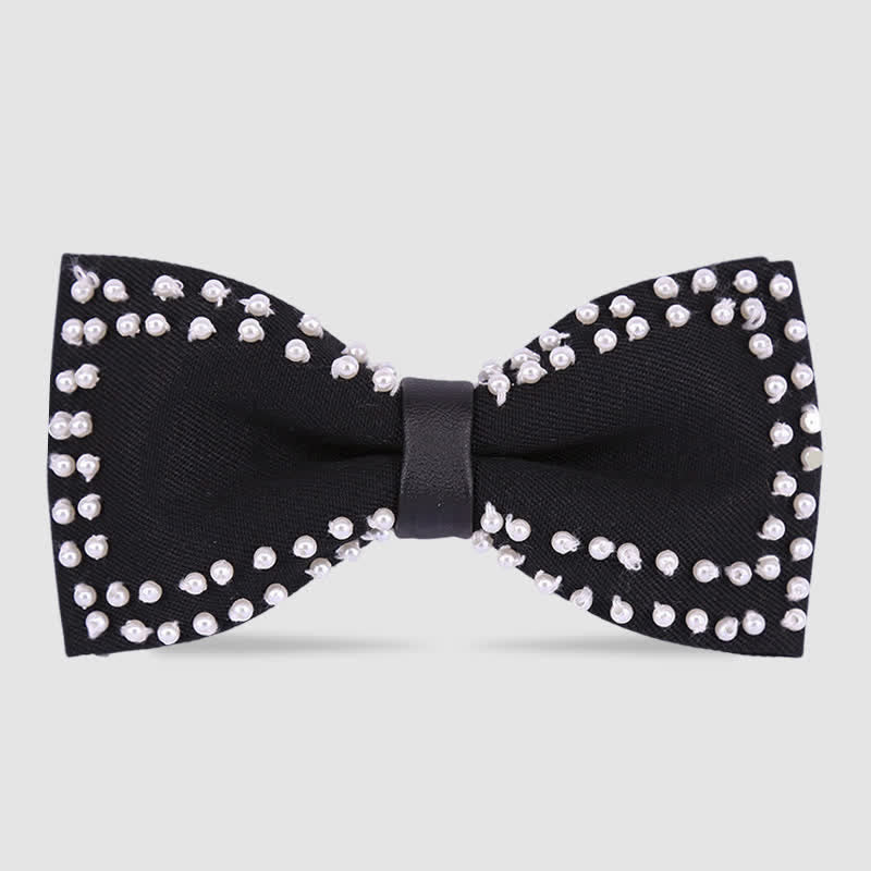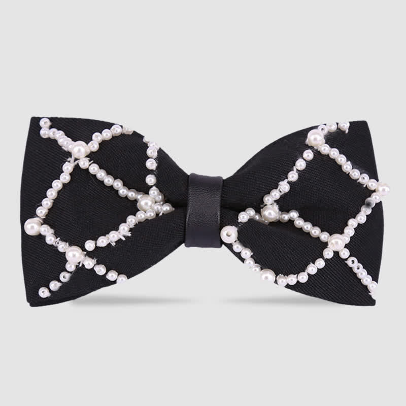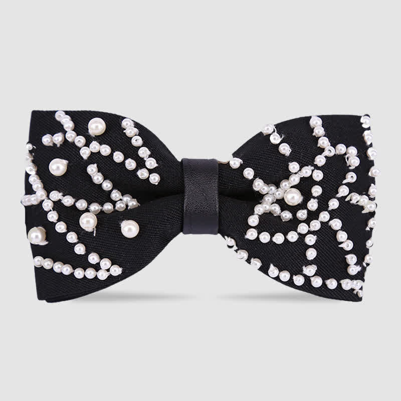 Elegant Hand-Embroidered Black & White Pearls Bow Tie - Style