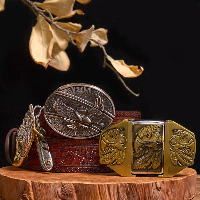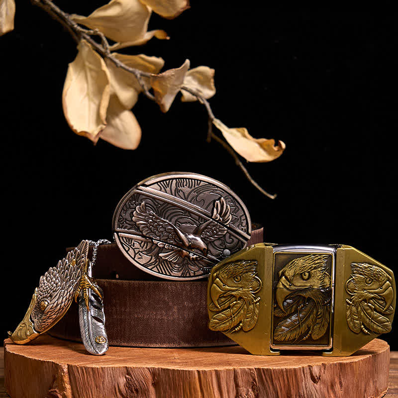 - Features a beautifully carved triple eagles. A stylish way to hold up your pants while simultaneously stashing your lighter in the front of the buckle.